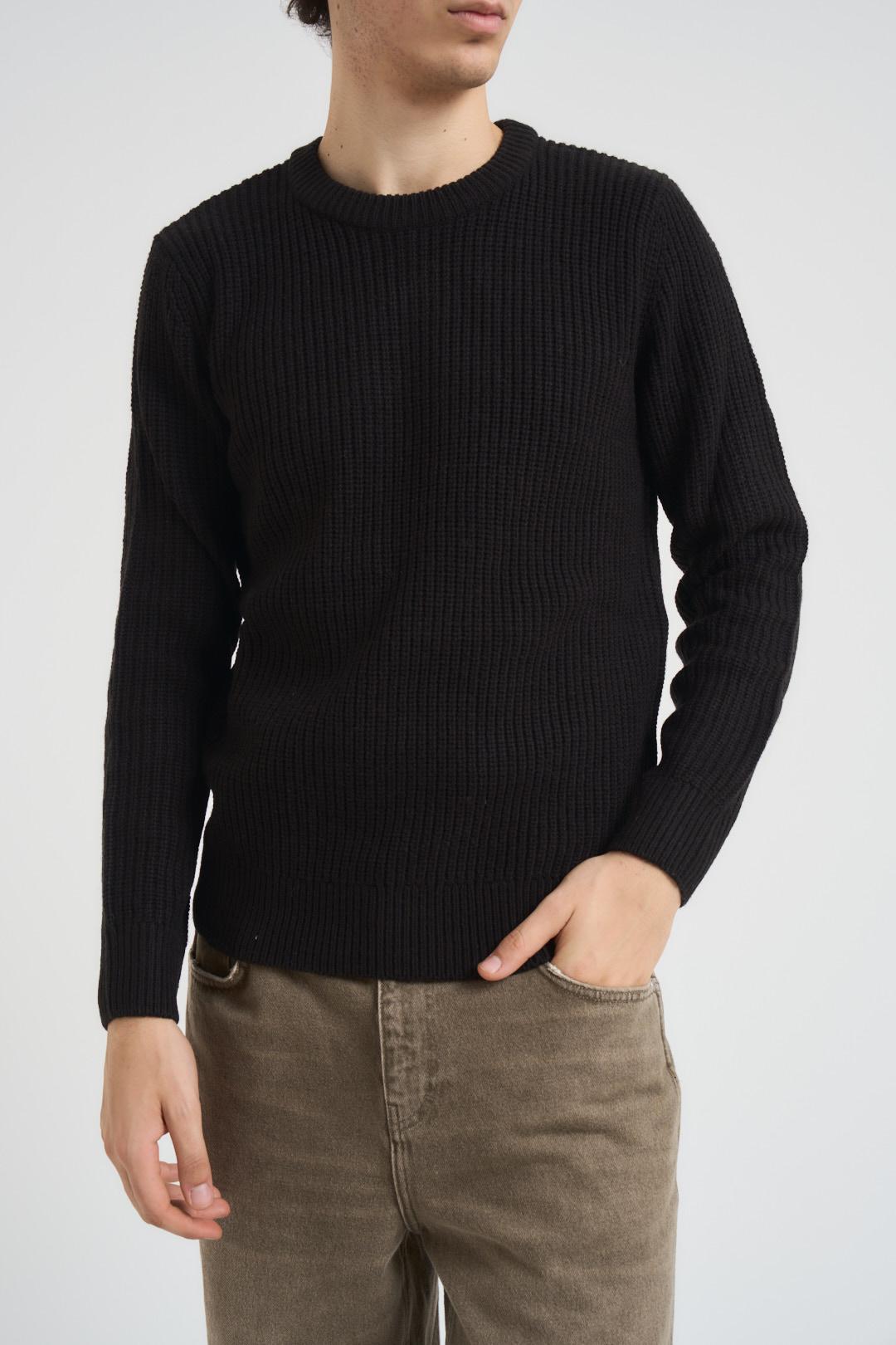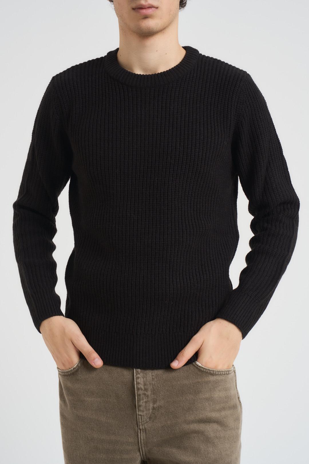 AGOEFILO Maglia uomo nero. Modello girocollo a coste inglesi. Collo, polsi e fondo a costine. Regular fit. Composizione: misto lana. Il modello è alto 190 cm e indossa la taglia L.