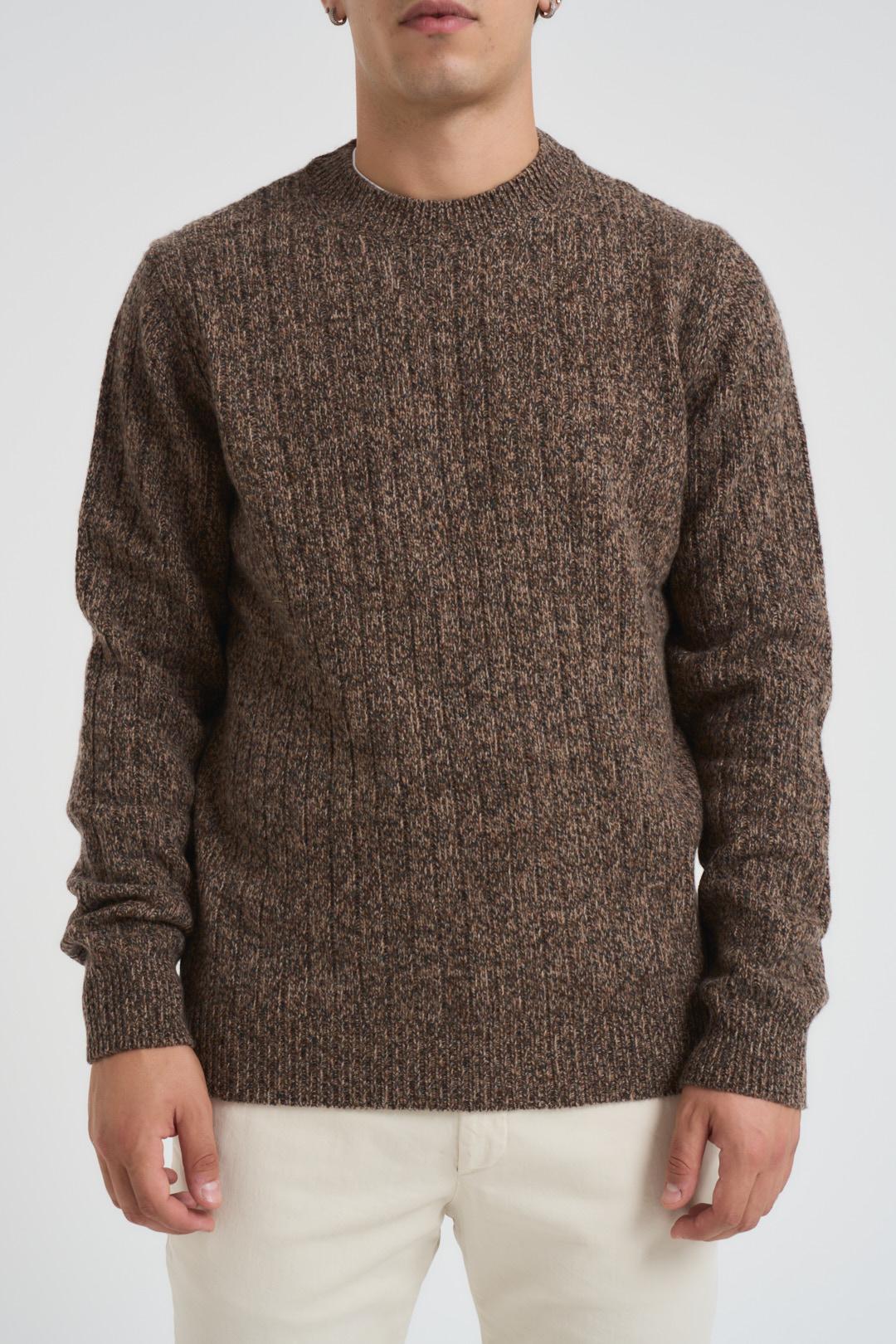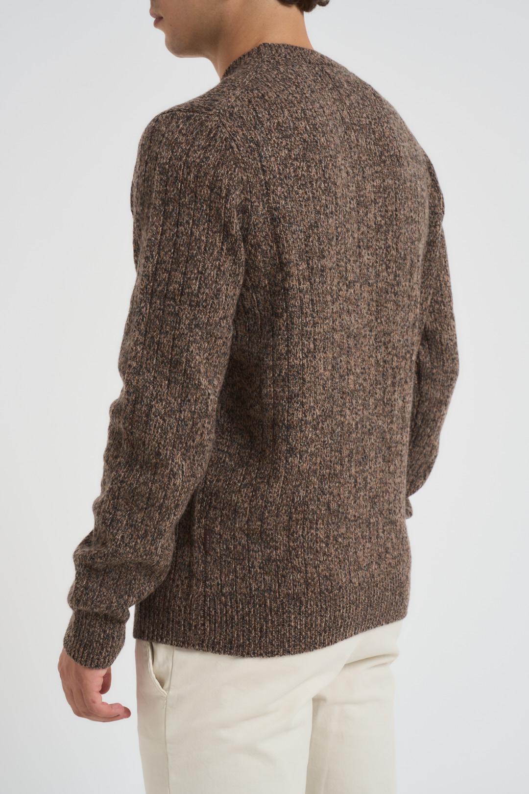 AT.P.CO Maglione a coste uomo. Modello girocollo, maniche lunghe. Il modello è alto 185 cm e indossa la tg L. Colore: marrone melangé. Composizione: