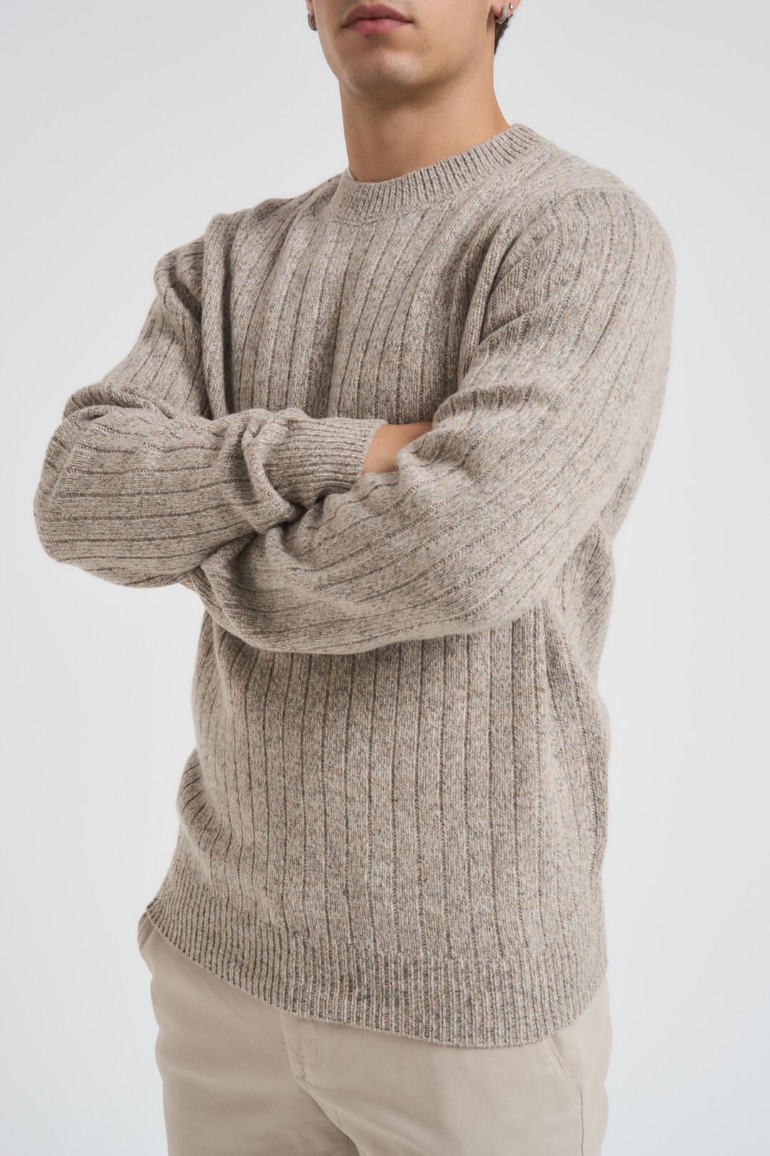 AT.P.CO Maglione a coste uomo. Modello girocollo, maniche lunghe. Il modello è alto 185 cm e indossa la tg L. Composizione: