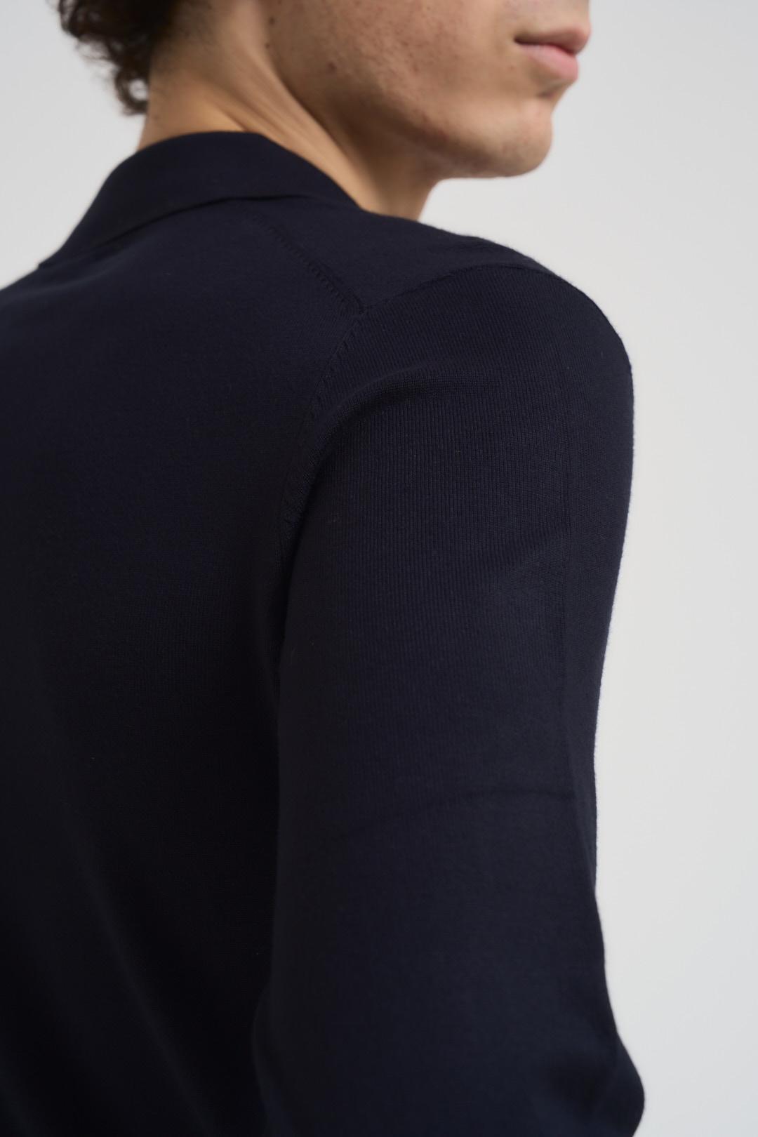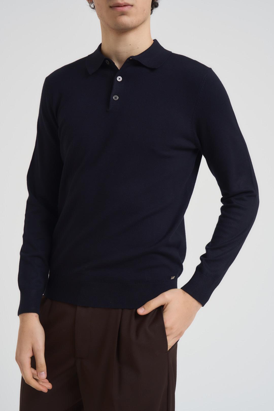MARKUP Polo uomo con bottoni blu. Modello con colletto classico e bottoni. Manica lunga. Polsini e orlo con lavorazione a costine. Composizione: 100% Cotone. Il modello è alto 190 cm e indossa la taglia L.