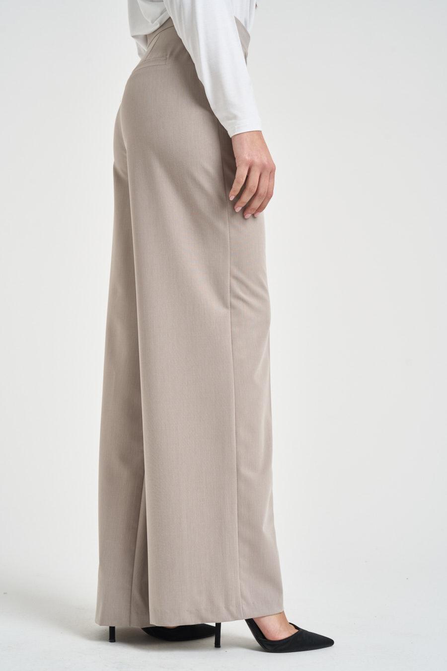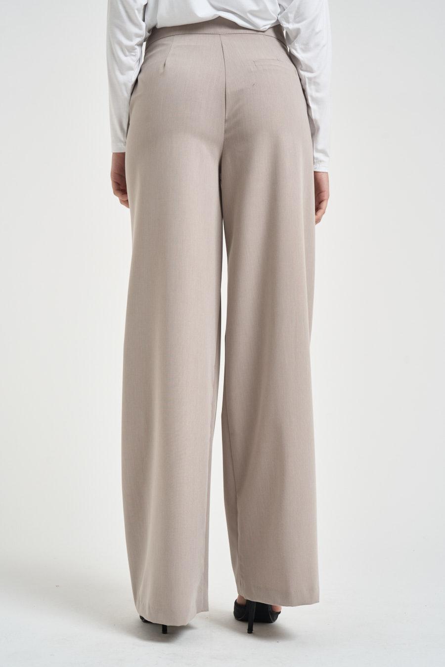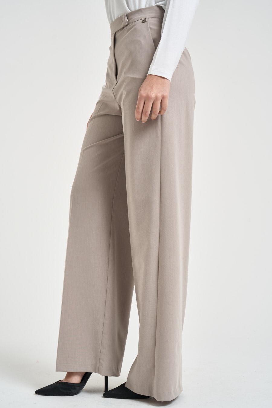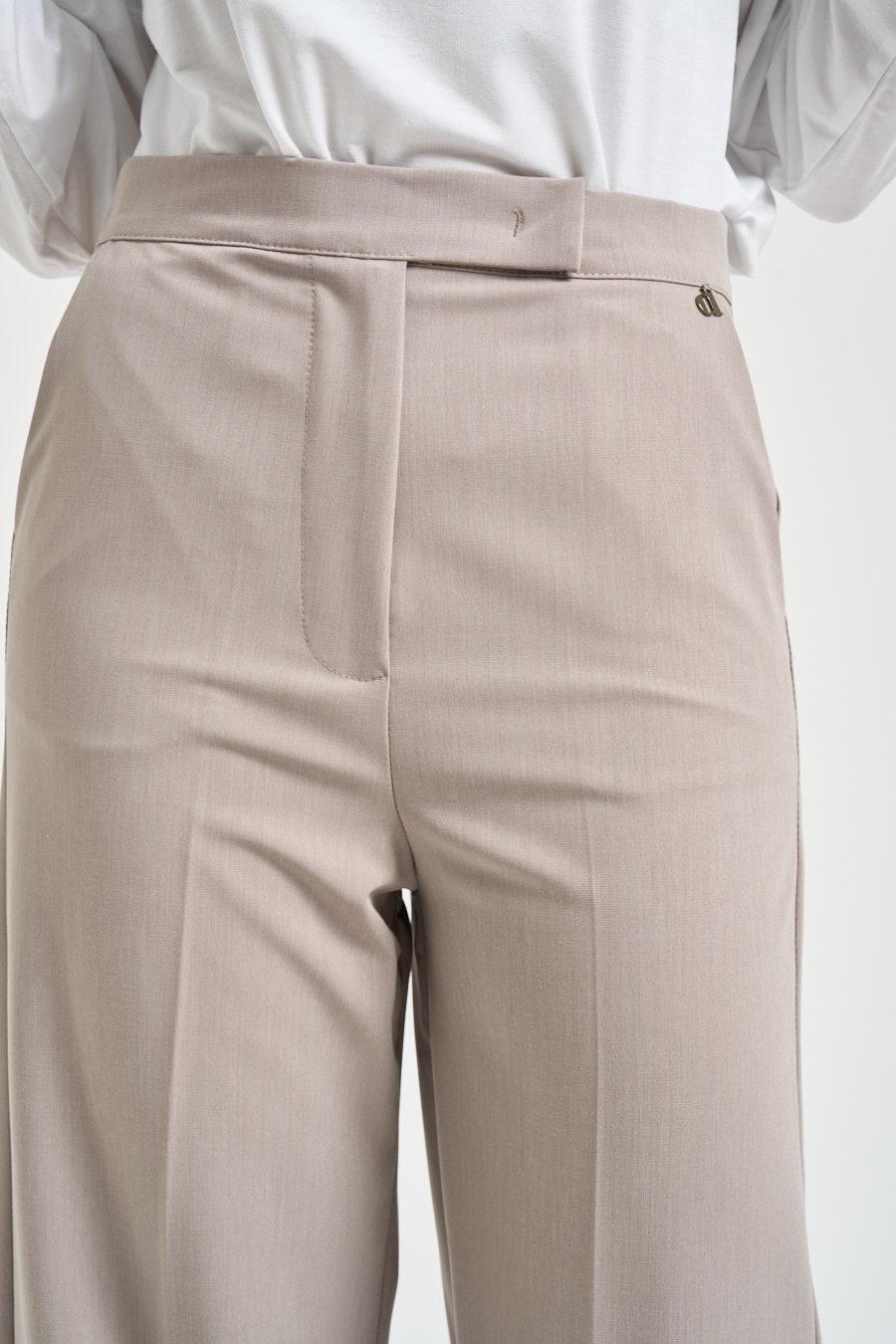 DIXIE Pantalone donna a palazzo grigio. Modello a vita alta con chiusura con zip e gancetto. Due tasche a filetto laterali. Composizione: 70%poliestere 26%viscosa 04% elastane. La modella è alta 172cm e indossa la taglia S.