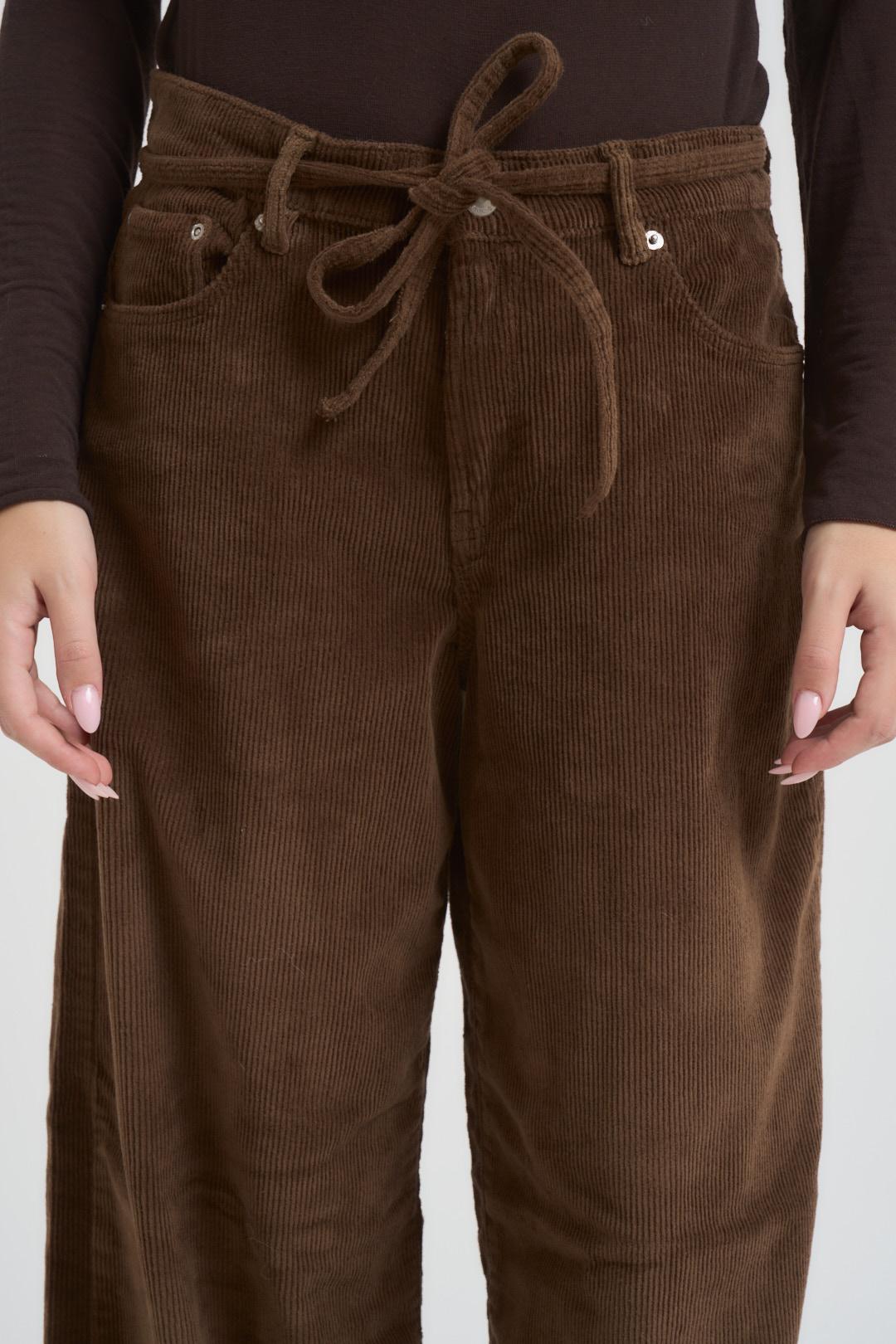 ONLY Pantalone donna a palazzo in velluto a costine marrone. Modello con passanti in vita, laccetto tono su tono, chiusura con zip e bottone. Composizione: 98% Cotone, 2% Elastan. La modella è alta 172 cm e indossa la taglia S.