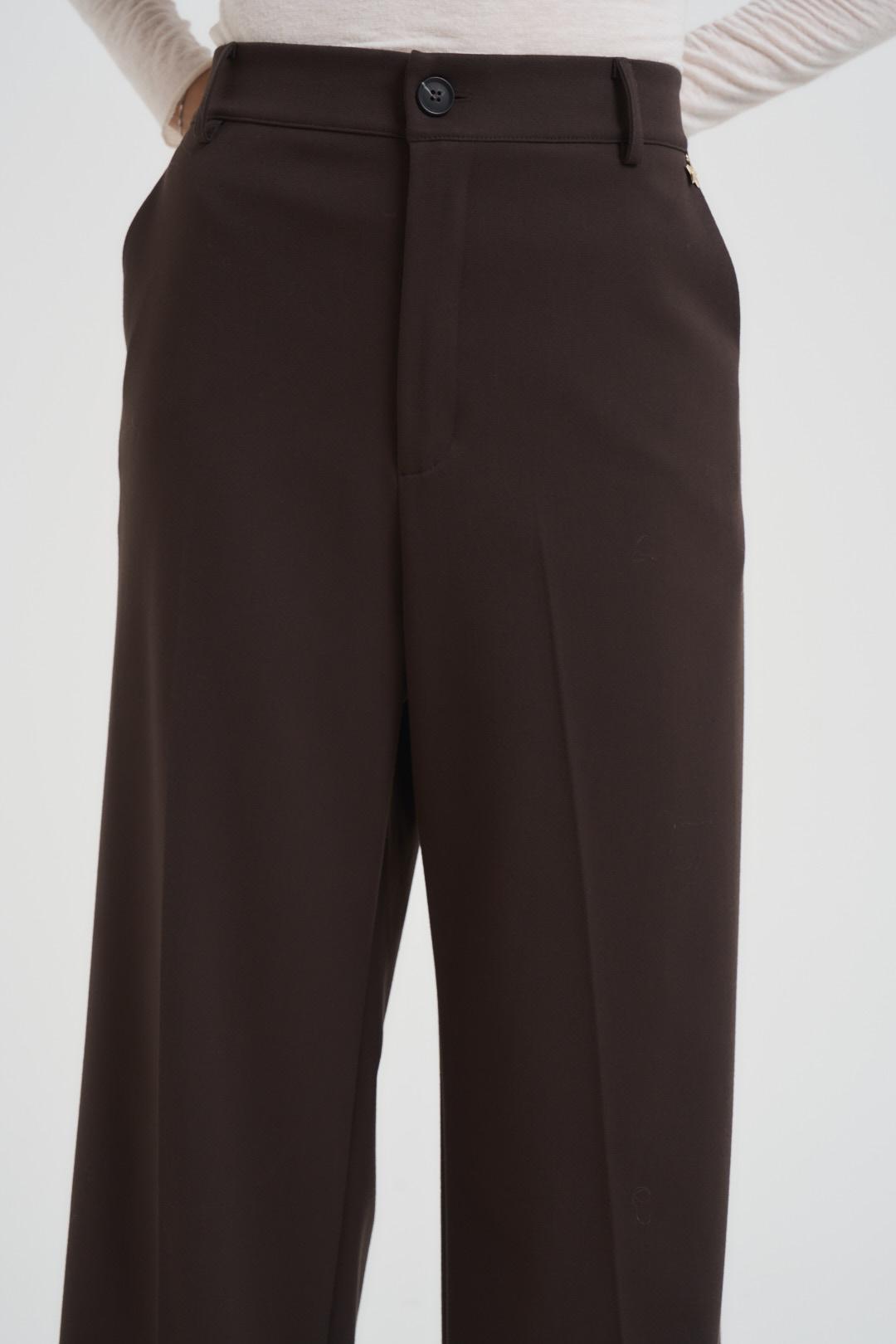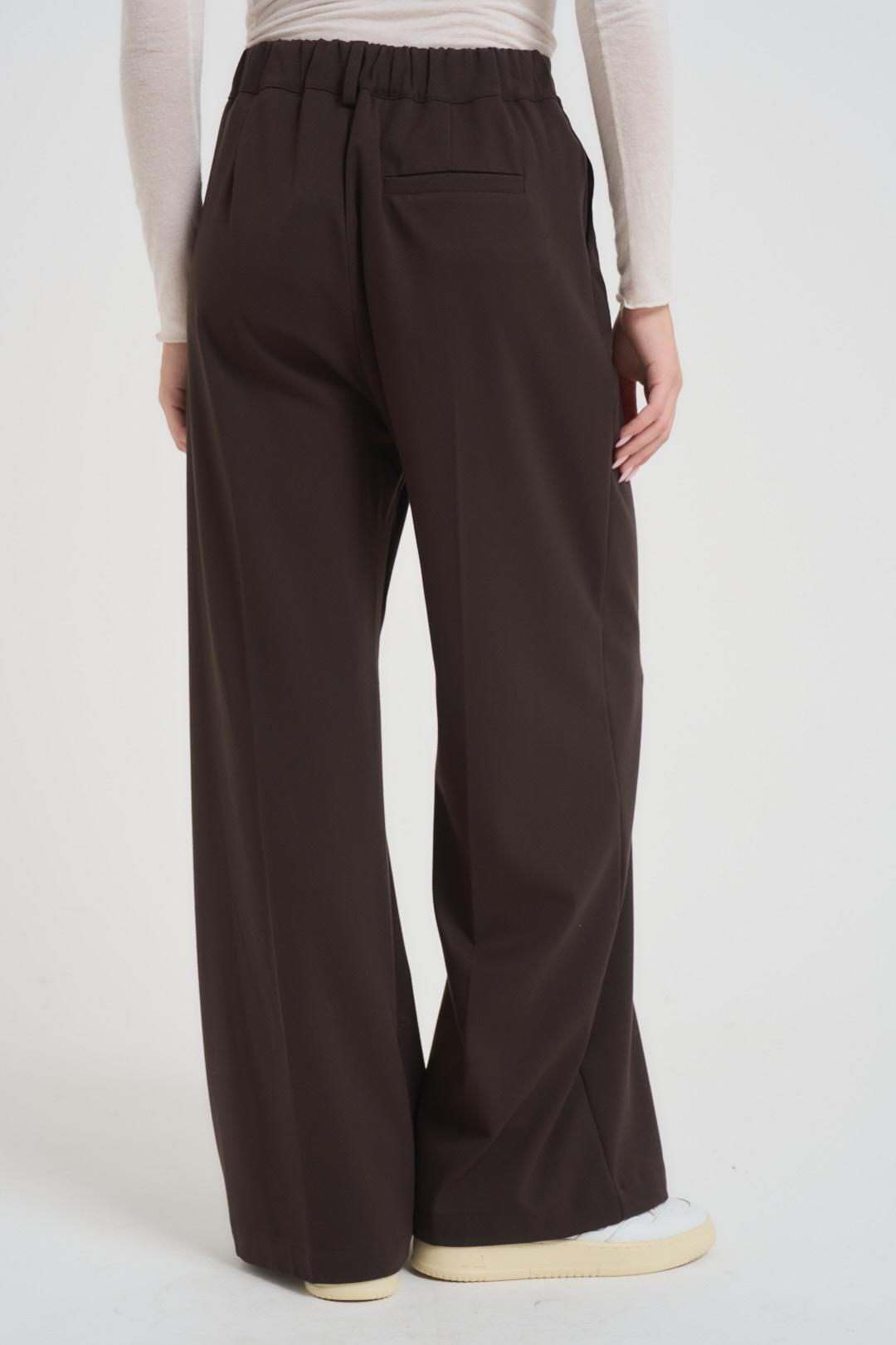 SOUVENIR CLUBBING Pantalone donna a palazzo marrone. Modello con pinces e pieghe. Chiusura frontale con zip e bottone. Passanti in vita. Due tasche oblique frontali. Tasca a filetto sul retro. Composizione: 64%poliestere 34%viscosa 2%elastane. La modella è alta 176 cm e indossa la taglia S.