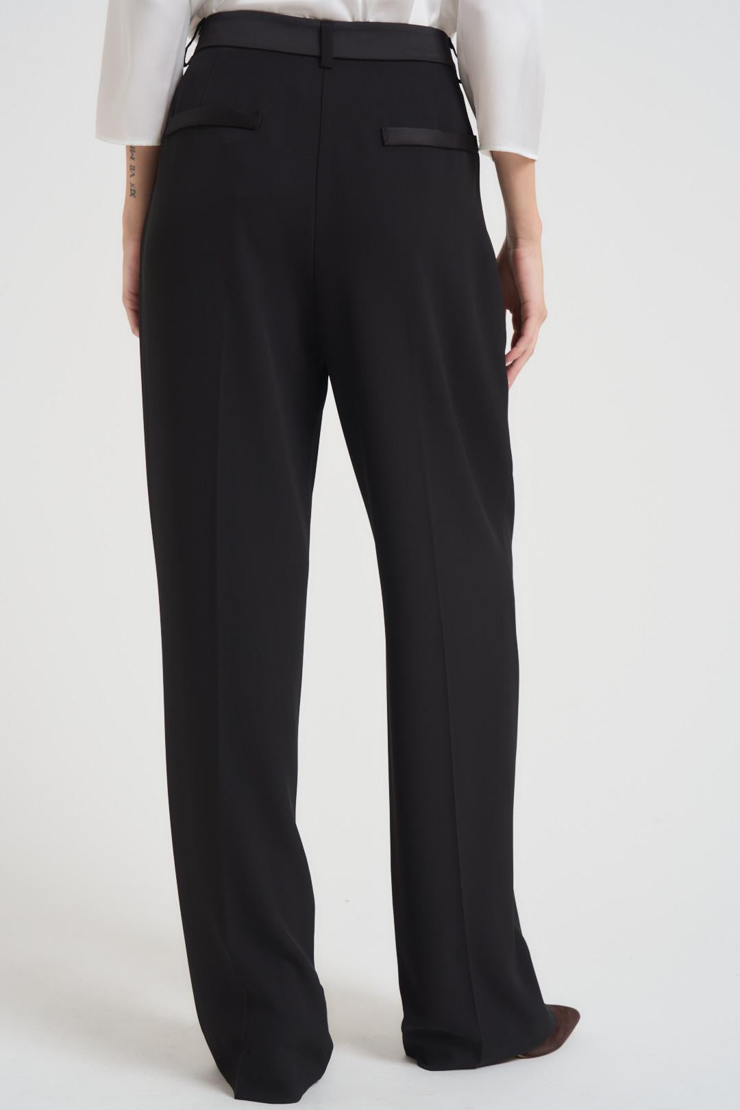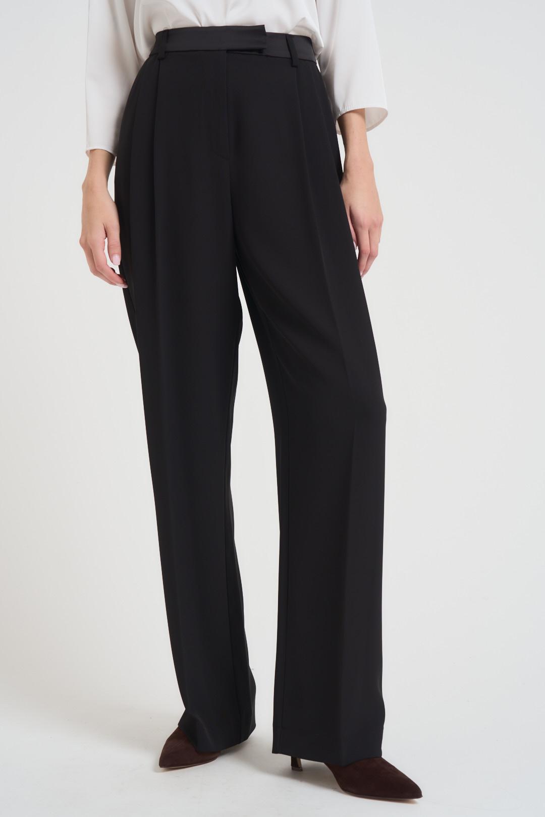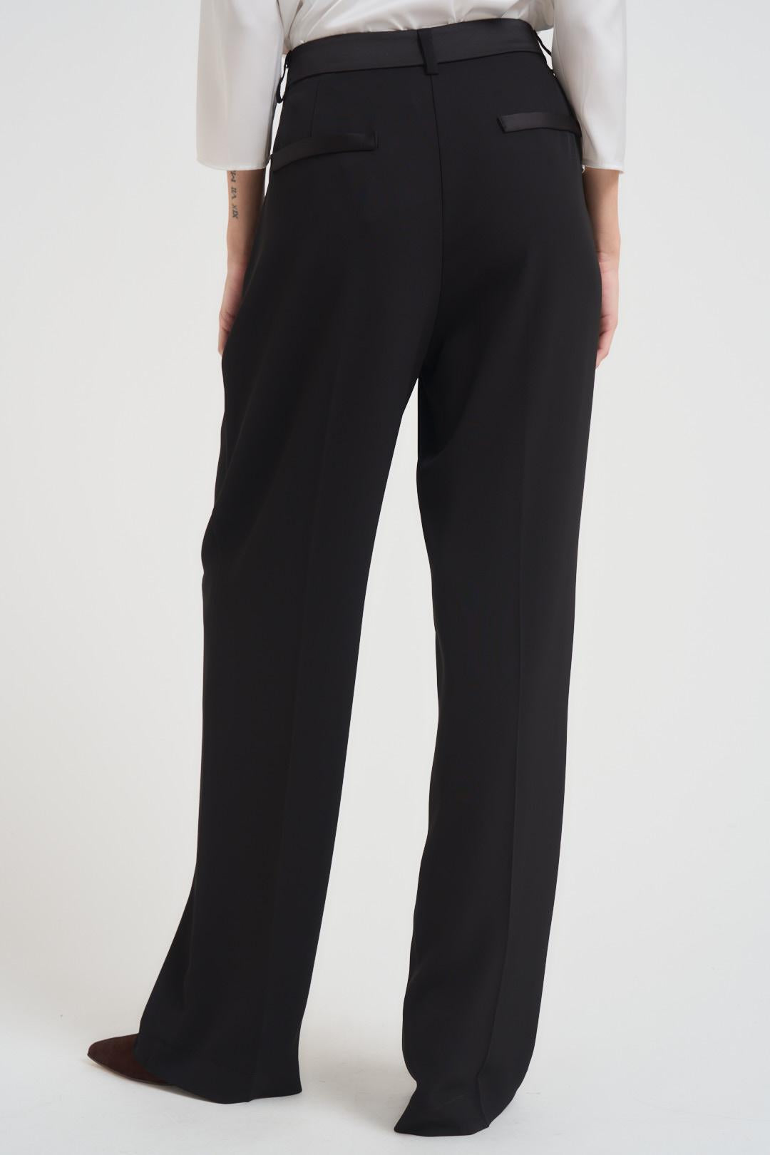 IMPERIAL Pantalone donna a palazzo nero. Modello con gamba ampia e vita alta. Passanti in vita, dettagli satinati. Due tasche a filetto. Composizione: 96%poliestere 4% elastane. La modella è alta 175cm e indossa la taglia S.