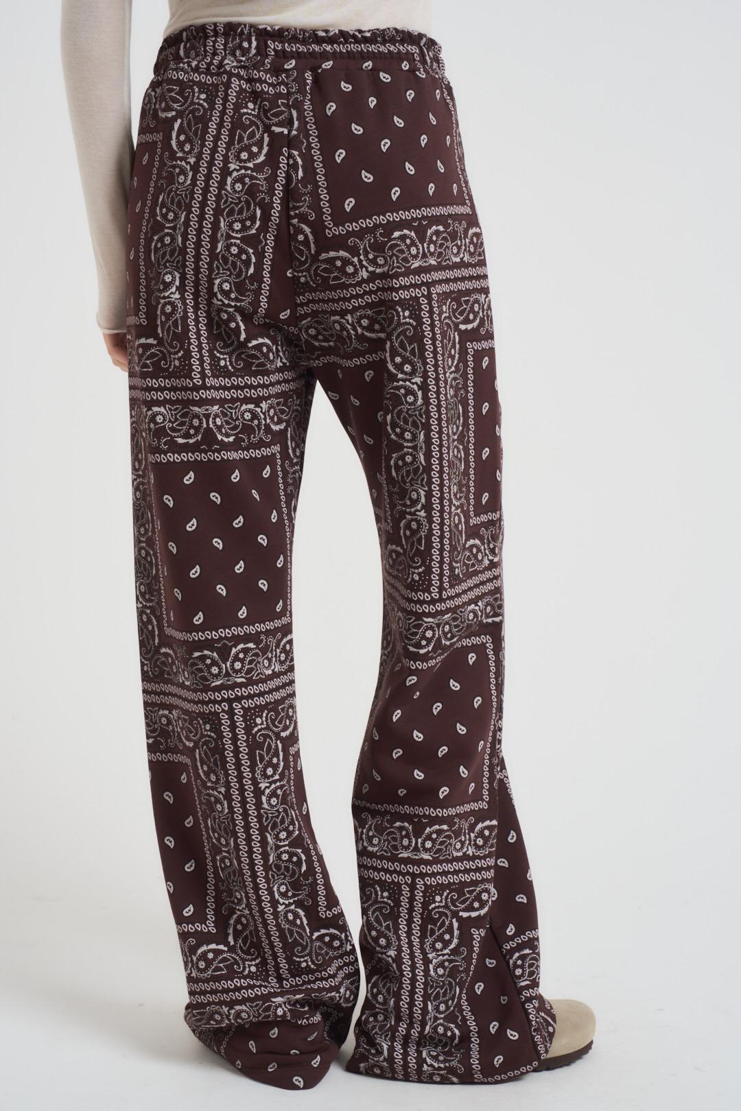 LOKITA MILANO Pantalone donna bandana marrone. Modello con elastico in vita e coulisse. Composizione: 80% cotone 20% poliestere. La modella è alta 176 cm e indossa la taglia S.