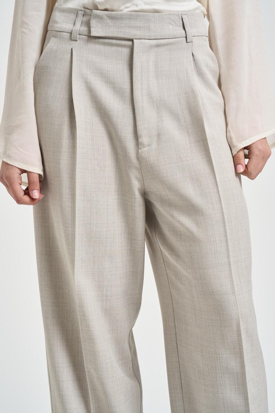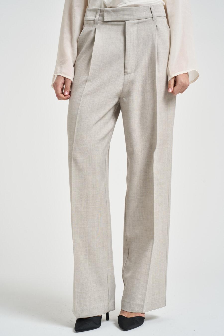 VICOLO Pantalone donna dritto grigio chiaro. Modello con chiusura frontale con zip e gancetto. Pieghe. Passanti in vita. Tasche laterali. Tasche a filo sul retro. Composizione: 100% poliestere. La modella è alta 176 cm e indossa la taglia S.