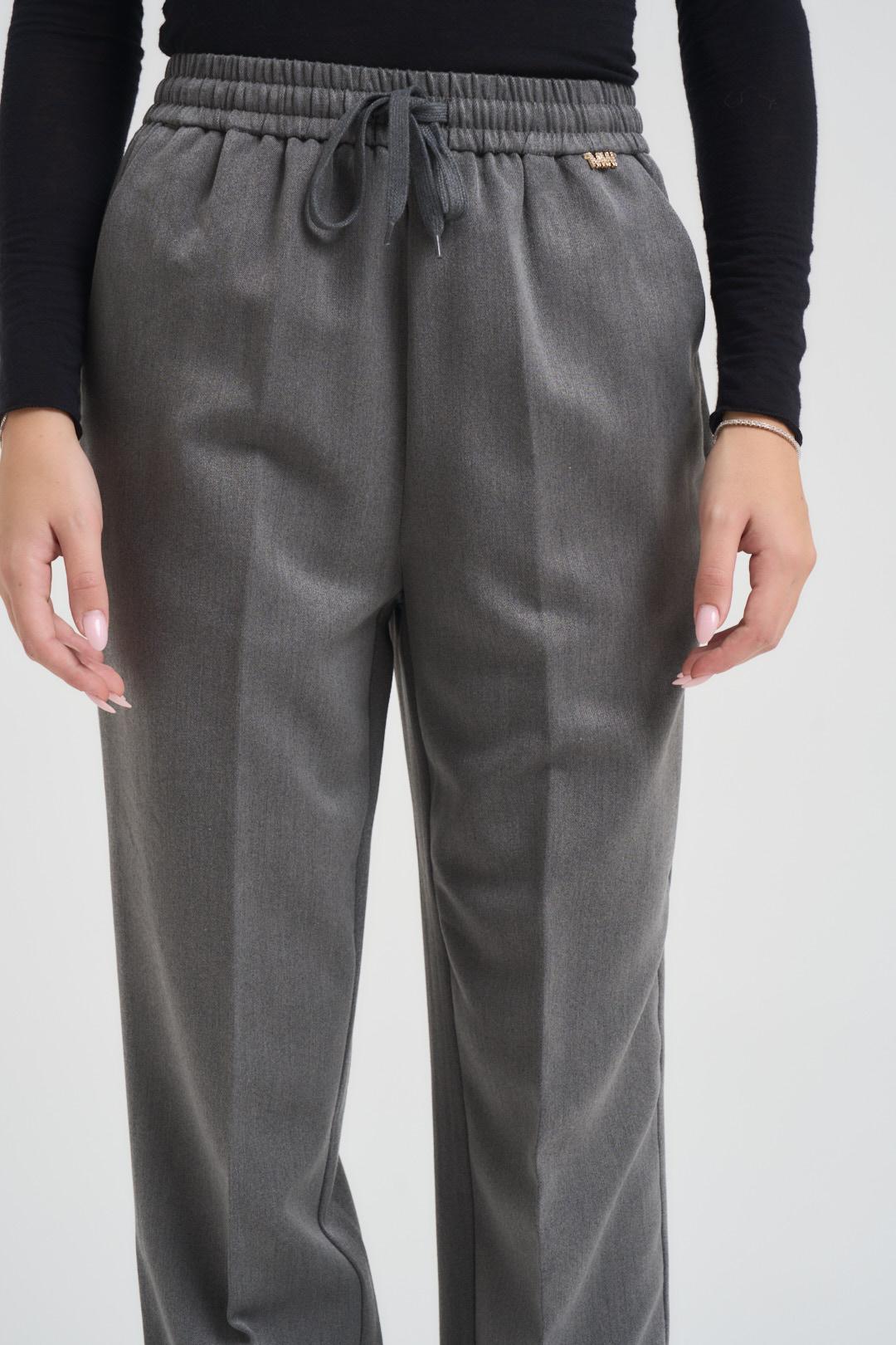 MARKUP Pantalone donna grigio a sigaretta. Modello realizzato in poliestere e viscosa. Elastico in vita con coulisse. Tasche laterali a filetto. La modella è alta 172cm e indossa la taglia 40.