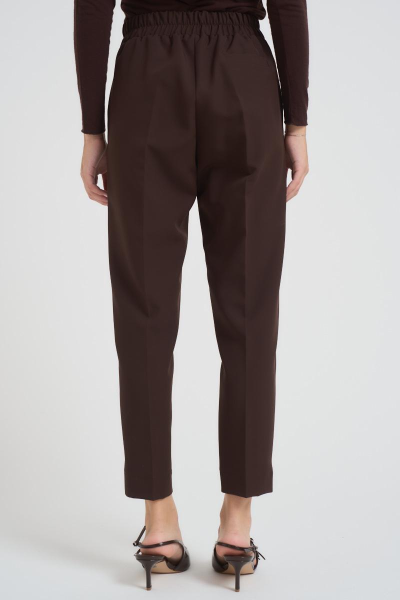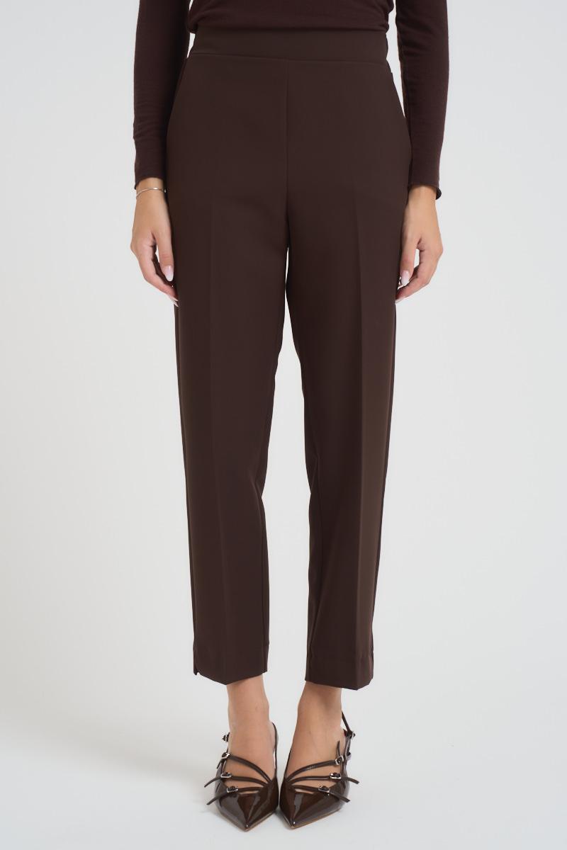 MARYLEY Pantalone donna regular marrone. Modello con elastico sul retro, a sigaretta evestibilità regolare. Due tasche a filetto. La modella è alta 172 cm e indossa la taglia unica. Composizione: 90%Viscosa 10% Polyestere. La modella è alta 172 cm e indossa la taglia S.