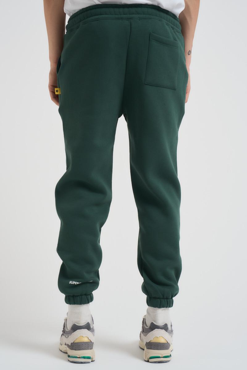 SUPERCULTURE Pantalone tuta jogger uomo verde. Modello con elastico in vita e sul fondo. Tasche filetto laterali. Vestibilità regular. Composizione: 65% cotone organico 35% poliestere. Il modello è alto 190cm e indossa la taglia L.