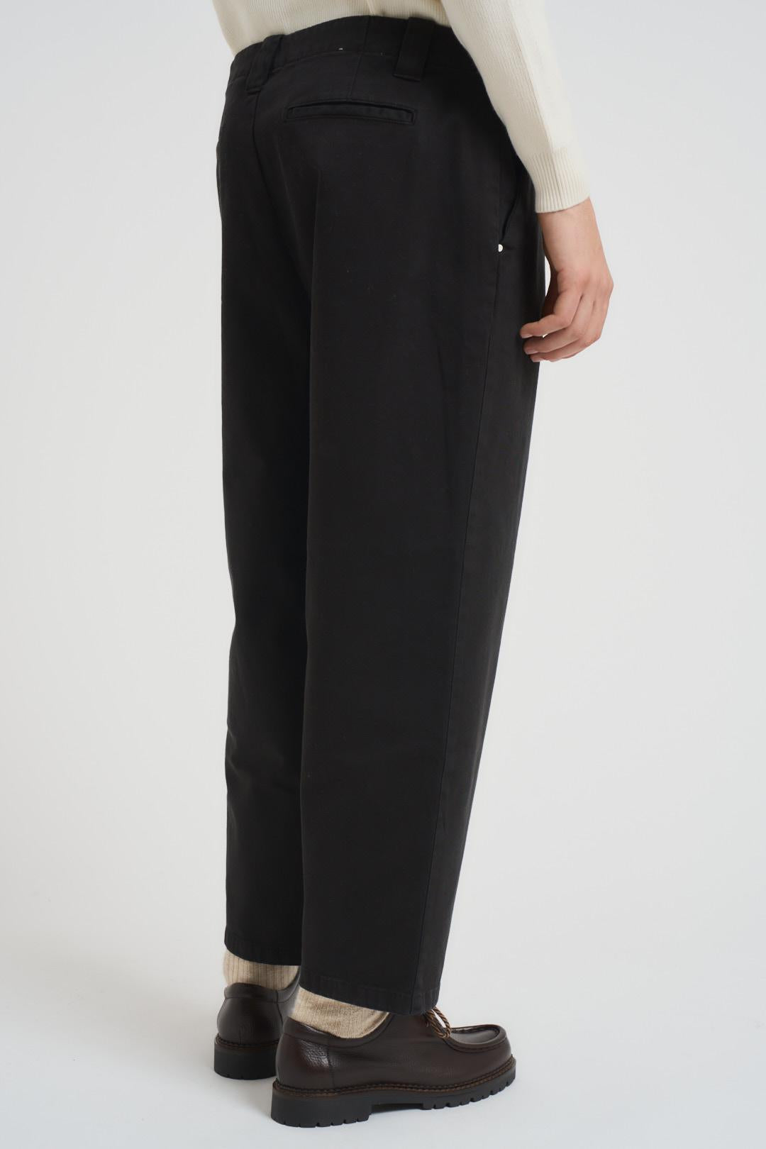 BL11 Pantalone uomo con pinces nero. Modello con due tasche a filo, passanti in vita, chiusura con zip e bottone. Fit regular, lunghezza alla caviglia. Composizione: cotone. Il modello è alto 190cm e indossa la taglia L.