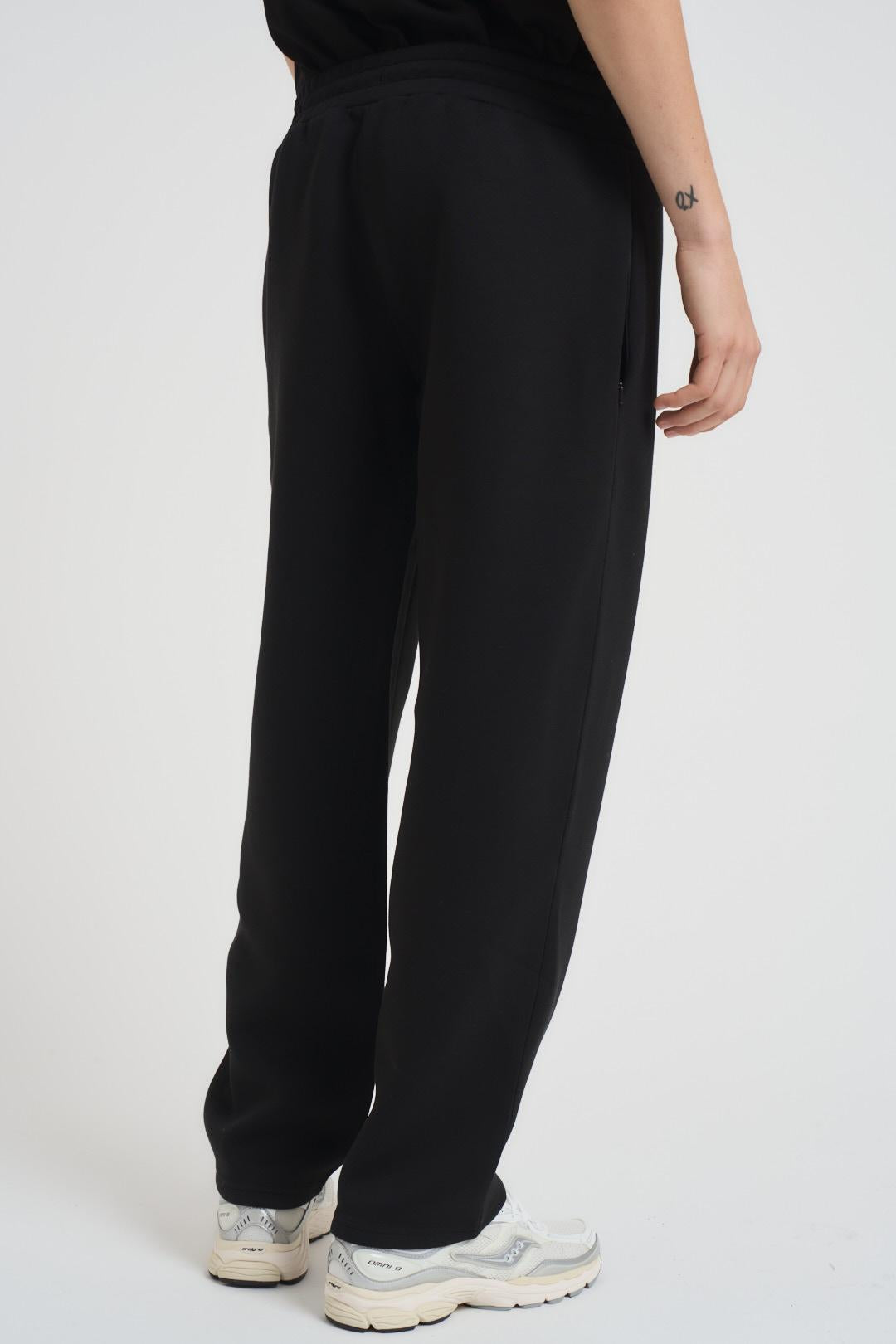 JACK & JONES Pantalone uomo tuta nero. Modello gamba dritta con coulisse in vita. Composizione: 77%Poliestere 18% Viscosa 5% Elastan. Il modello è alto 190cm e indossa la taglia L.