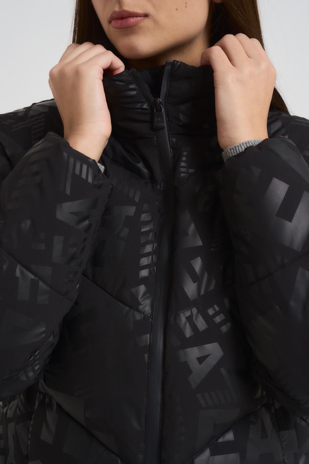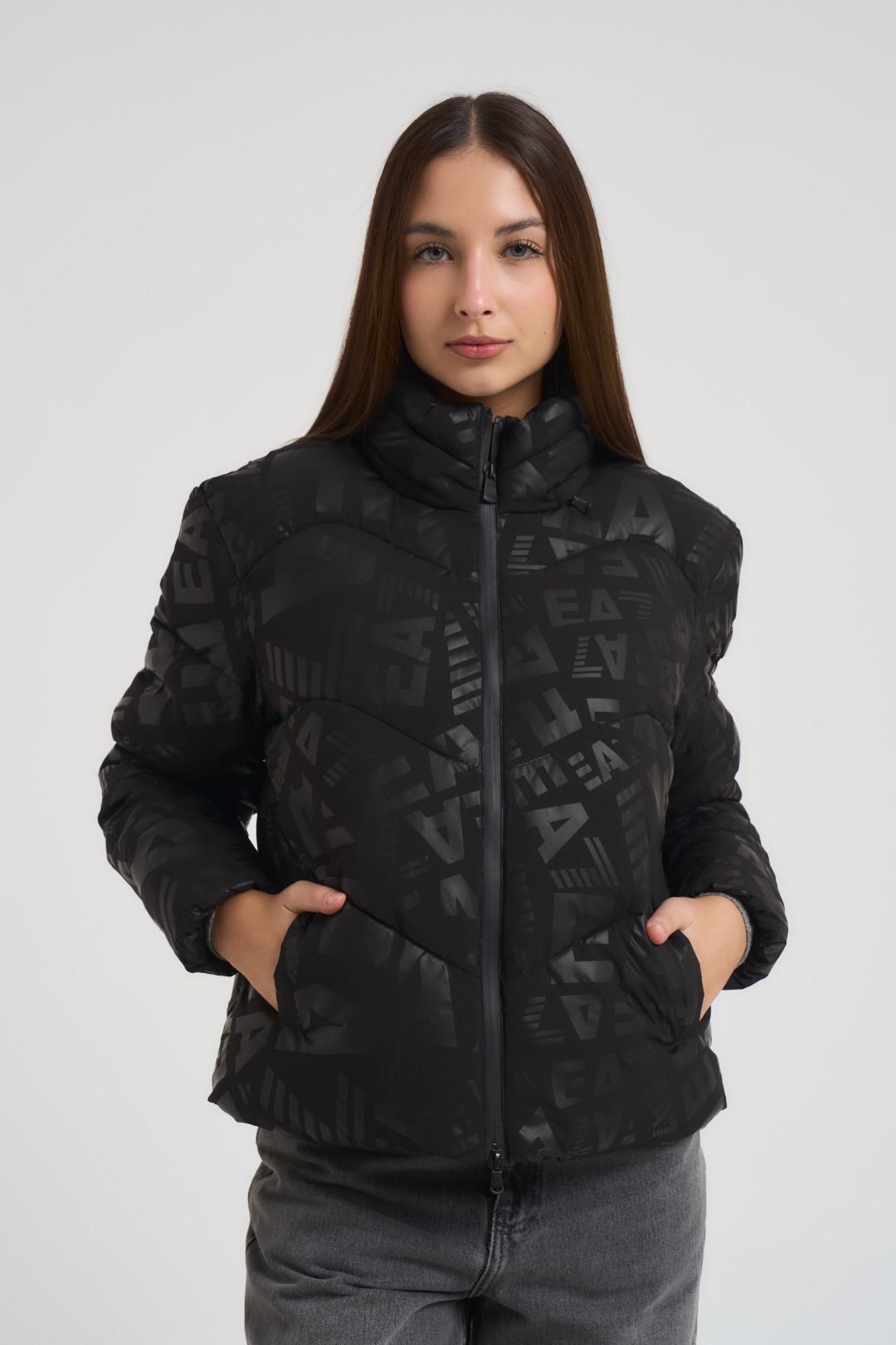 EA7 Piumino donna logato. Giubbotto con monogramma all over. Logo stampato. Chiusura con zip. Vestibilità regular. Modello con imbottitura. Composizione: 100% pl. Fodera: 100% pl. Colore: nero. La modella è alta 176 cm e indossa la tg S.