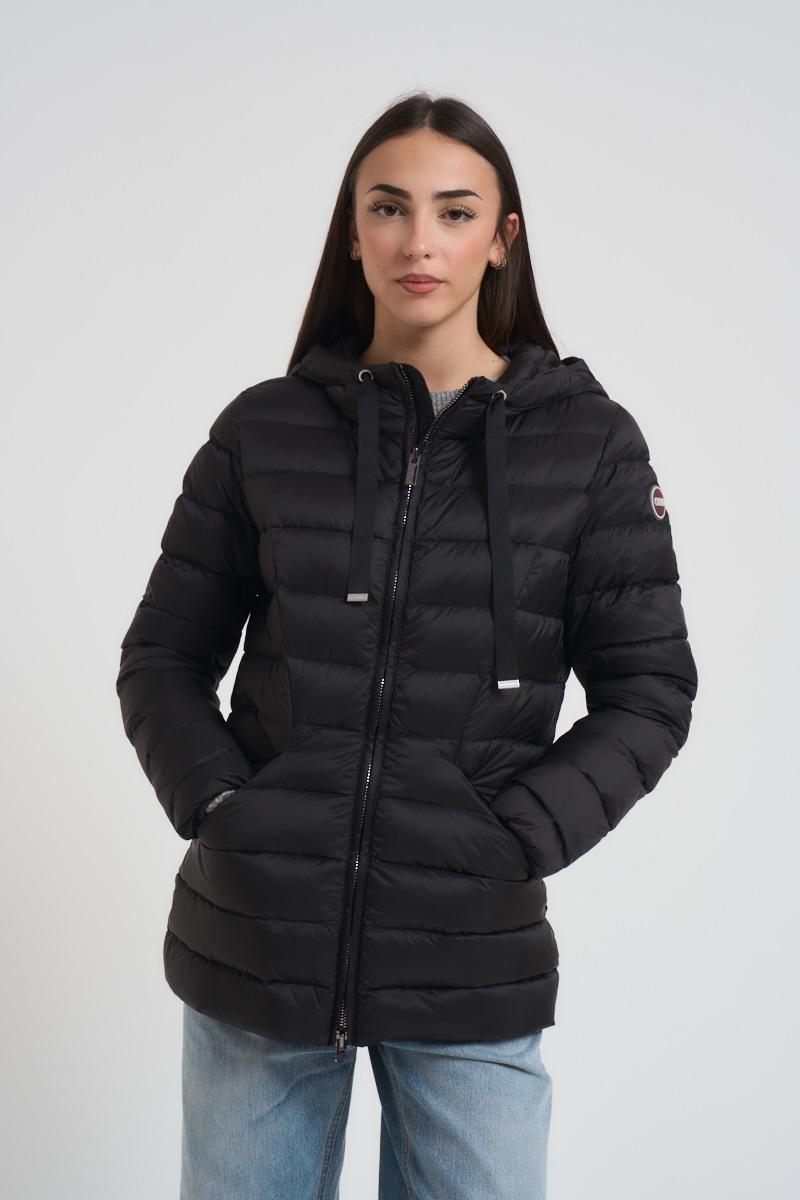 COLMAR Piumino donna nero. Modello imbottito. Chiusura frontale con zip a doppio cursore. Cappuccio regolabile tramite coulisse logate. Regular fit. Composizione: 100% Nylon. La modella è alta 172 cm e indossa la taglia 40.