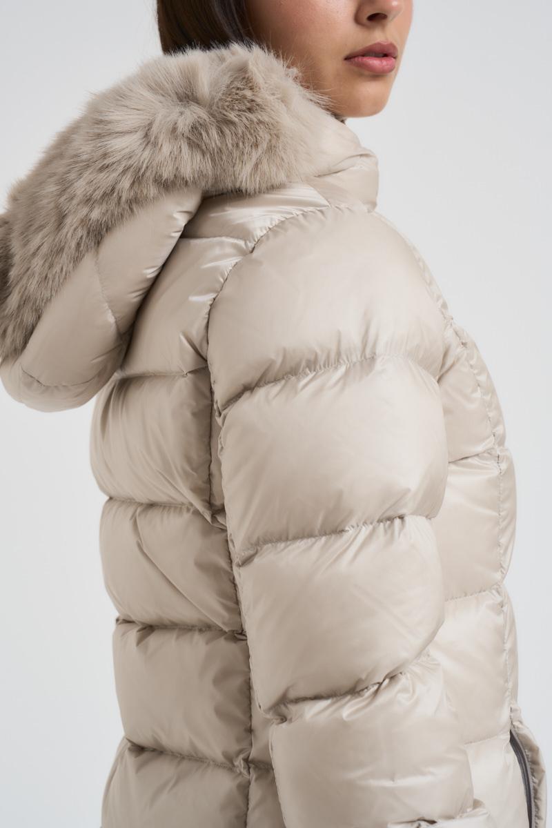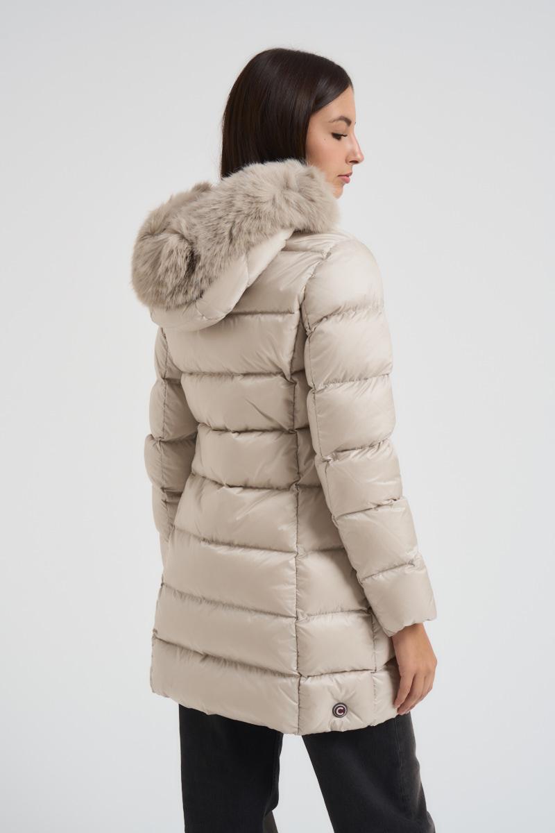 COLMAR Piumino donna trapuntato con bordo in vera pelliccia panna. Modello impermeabile. Tasche laterali con zip. Logo applicato sulla manica. Imbottitura in piuma e piuminpo d'anatra. Vestibilità slim. Composizione: 100% Nylon. La modella è alta 176 cm e indossa la taglia 40.
