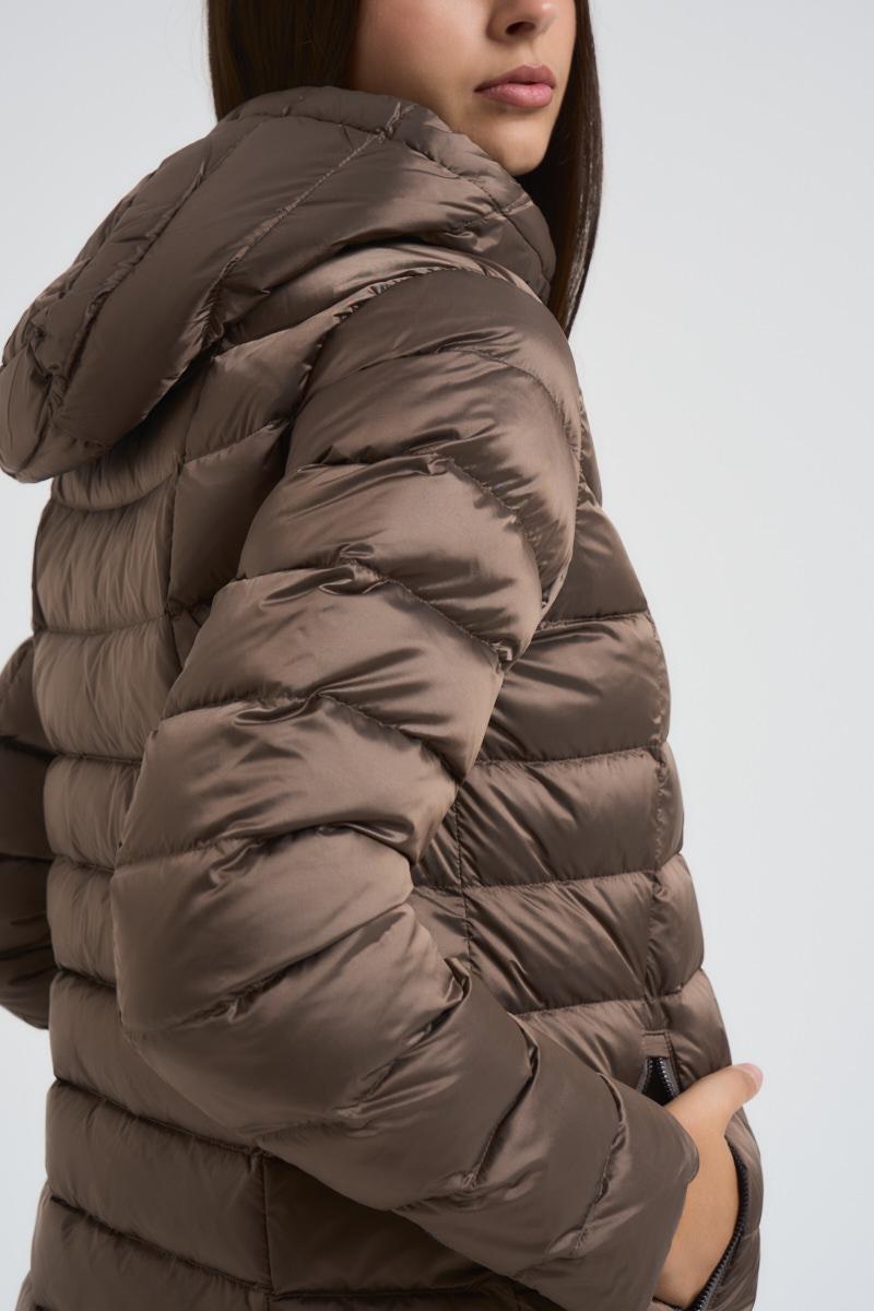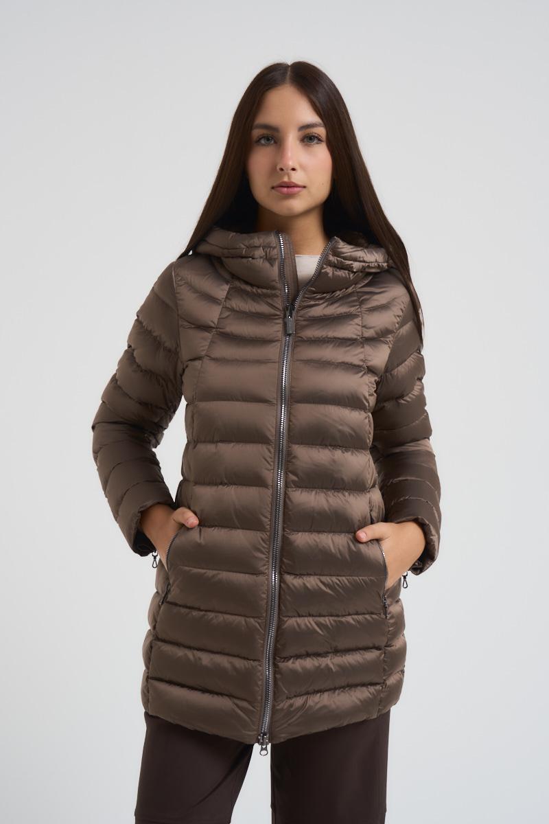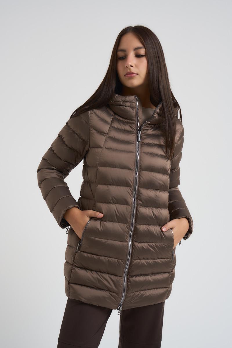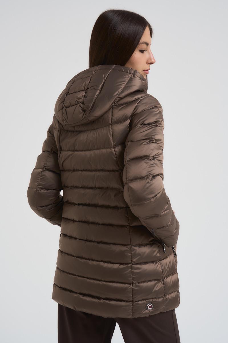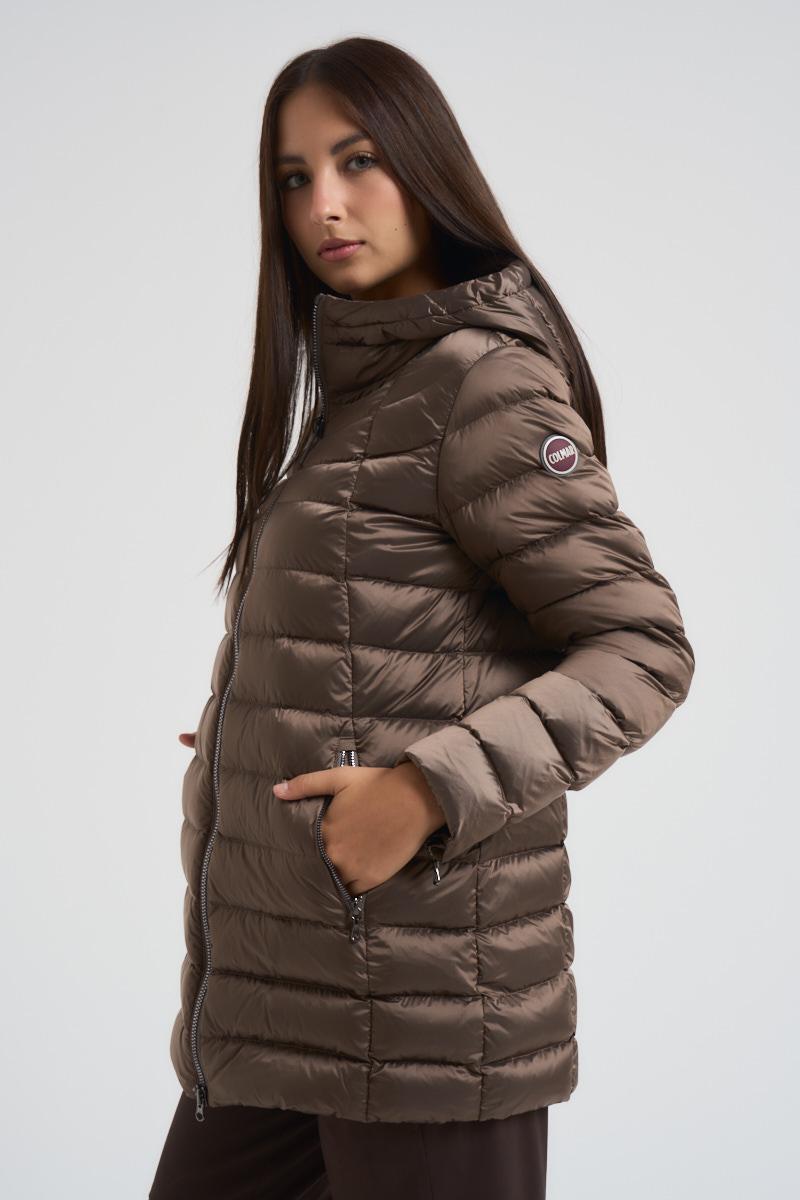 COLMAR Piumino donna V.DUV.DONNA tortora. Modello lungo trapuntato, imbottito con chiusuran a zip. Collo alto. Tasche con zip laterali. Imbottitura a fasce orizzontali. Logo circolare sulla manica sinistra. Composizione: 100% Poliammidica. La modella è alta 176 cm e indossa la taglia 40.