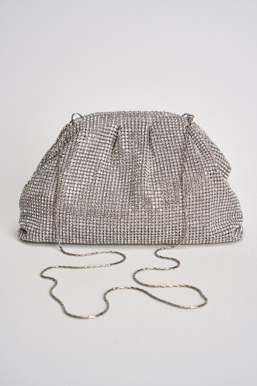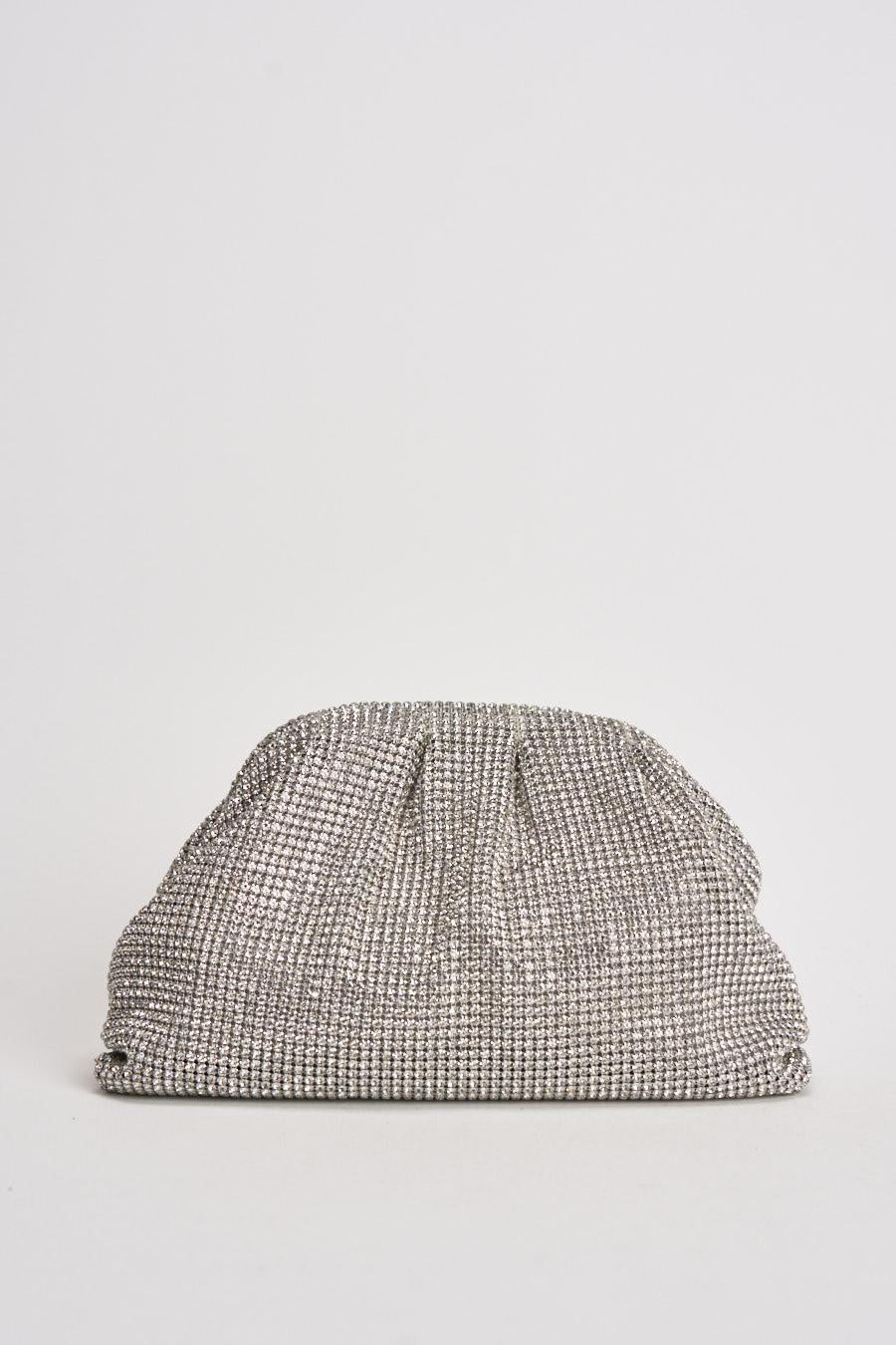 TWENTY FOURHAITCH Pochette donna con strass argento. Modello con tracolla removibile, interno foderato. Dimensioni: 21 x 14 x 9 cm. Composizione: 100% Crystal mesh