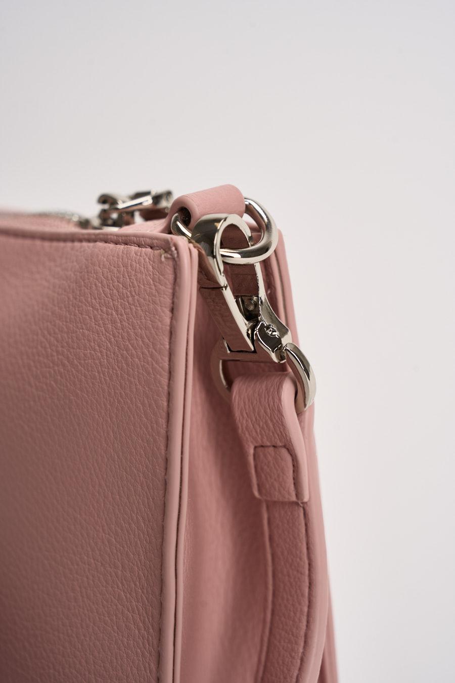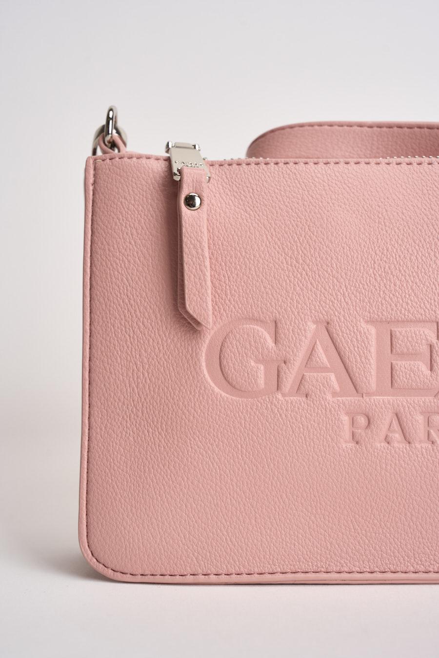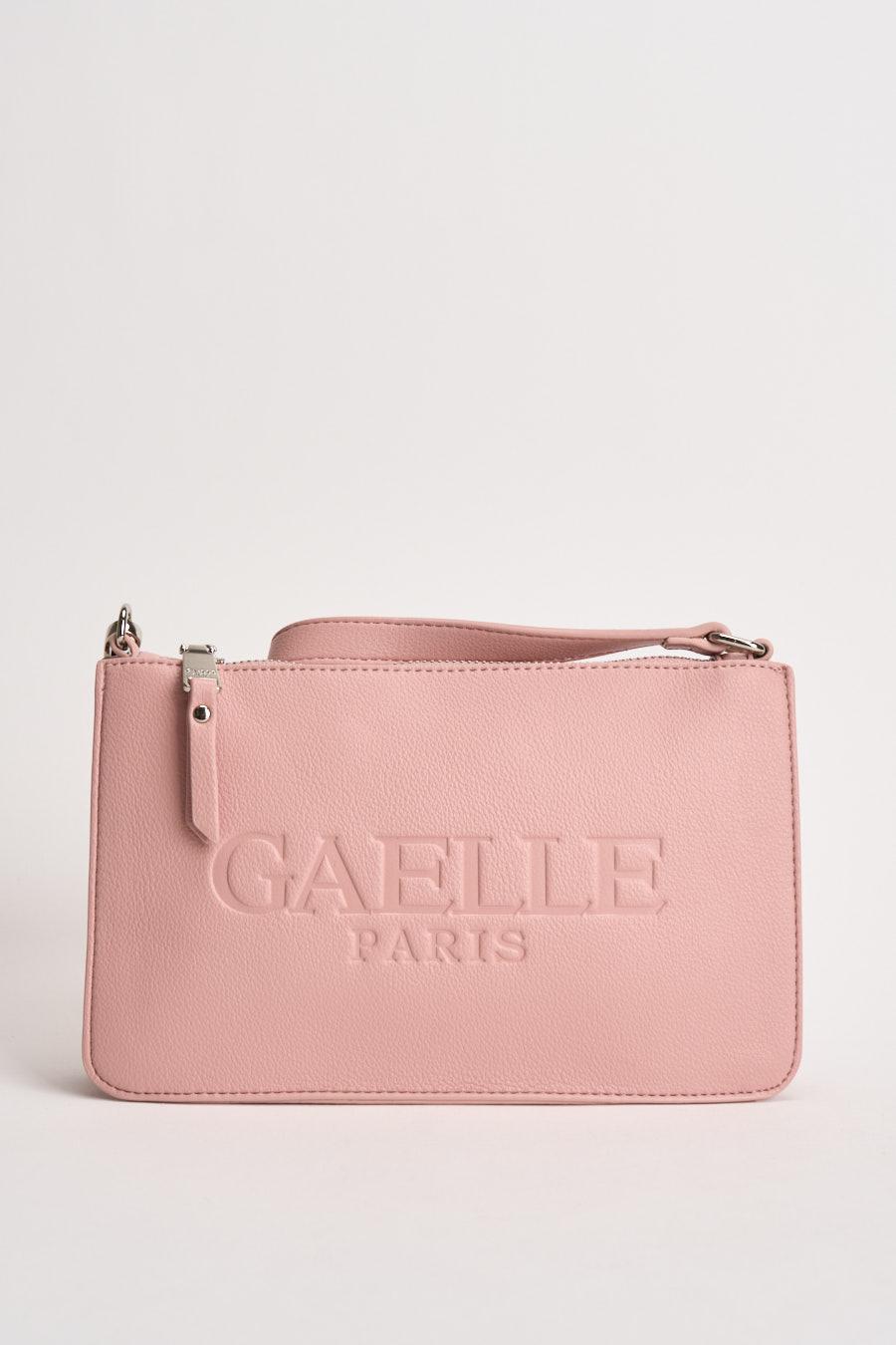GAELLE Pochette donna rosa. Modello a spalla dal design compatto e lineare con finitura martellata. Logo GAELLE PARIS in rilievo frontale. Chiusura con zip superiore. Tracolla regolabile e removibile con moschettoni in metallo. Dimensioni: 24 x 14 x 6 cm.