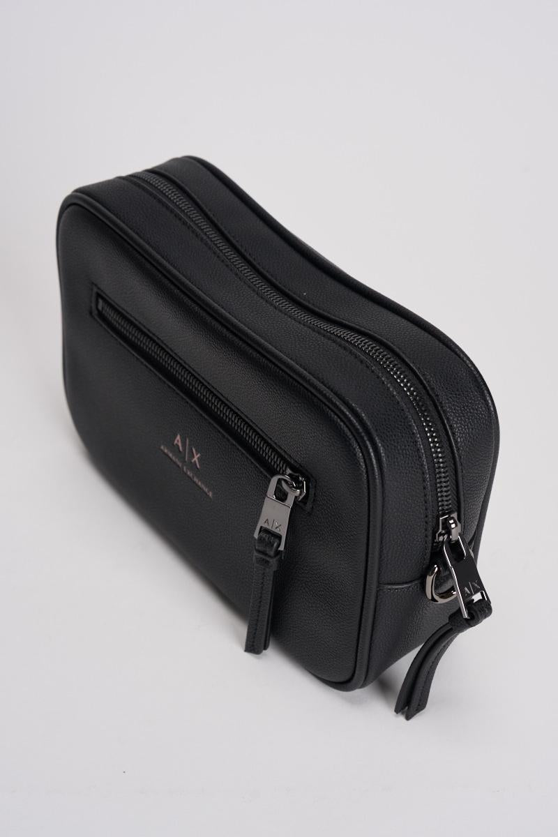 ARMANI EXCHANGE Pochette uomo nera. Modello con logo frontale, polsino removibile, tasca anteriore e scomparto centrale chiusura a zip, interni foderati con una tasca multiuso. Composizione: 100% Poliuretano. Dimensioni: 24x16x7cm.