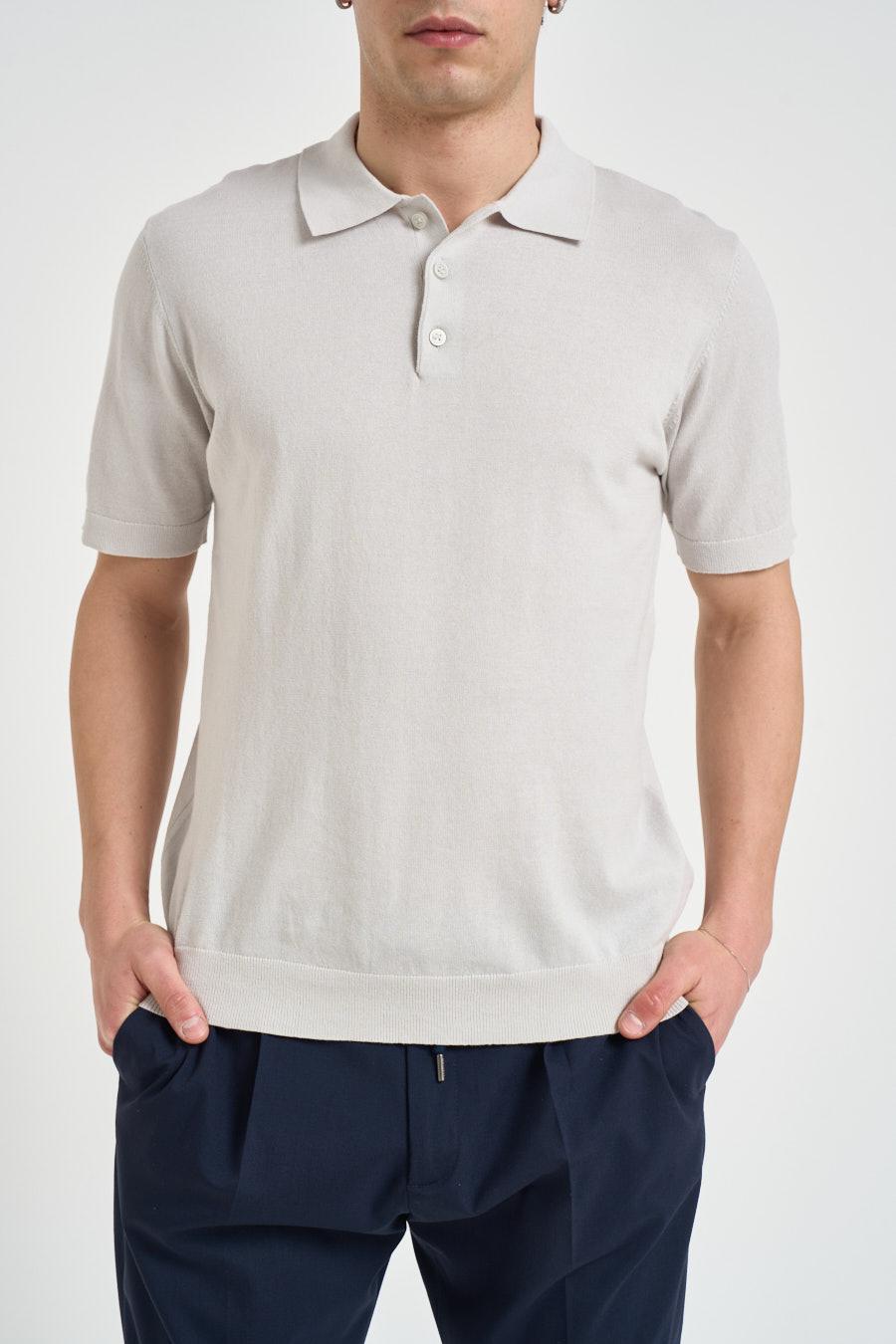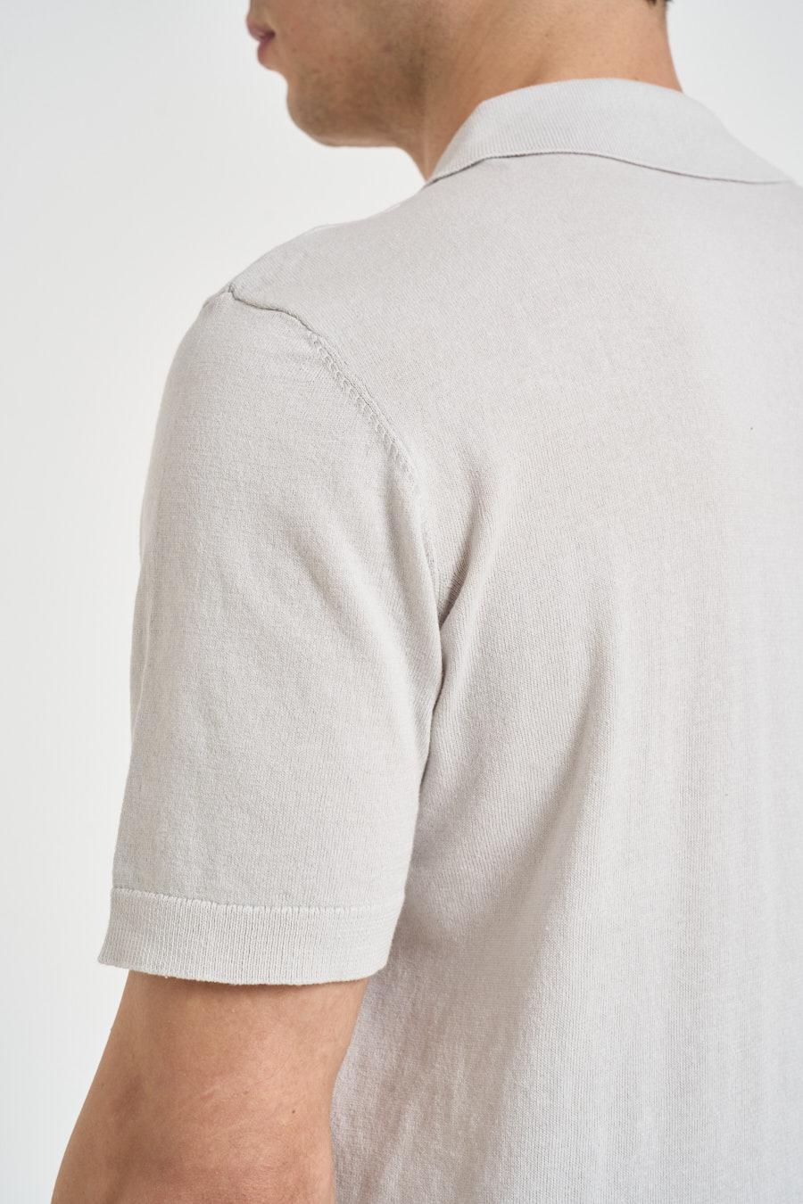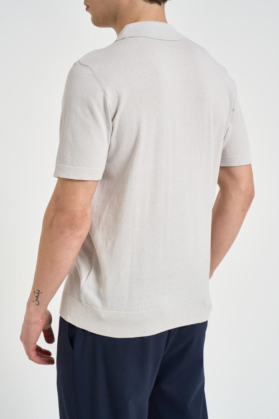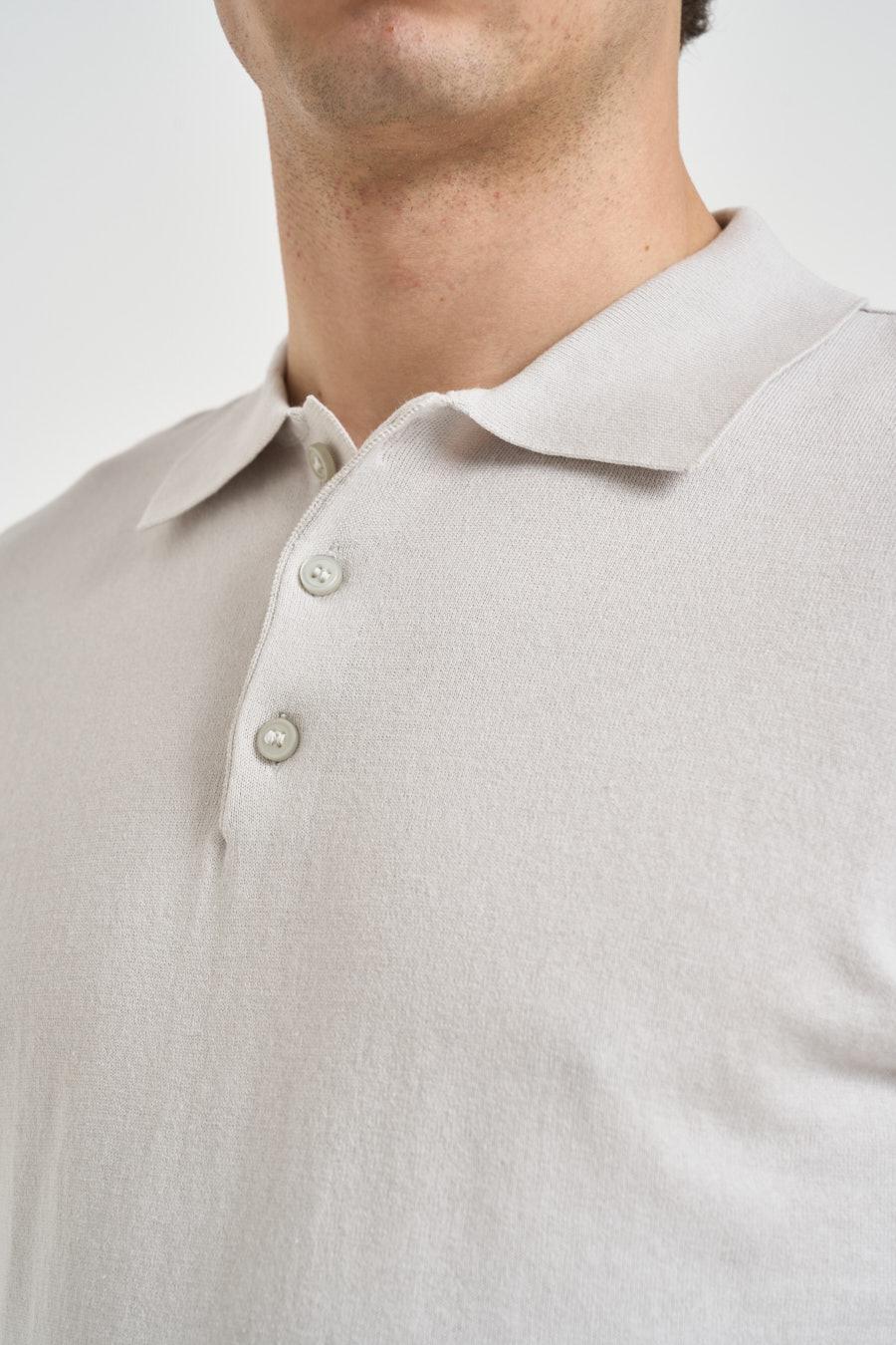 SEINSE Polo uomo a manica corta perla. Modello regular fit. Chiusura con bottoni. Colletto classico. Dettagli a costine. Composizione: 100% cotone. Il modello è alto 190 cm e indossa la taglia L.