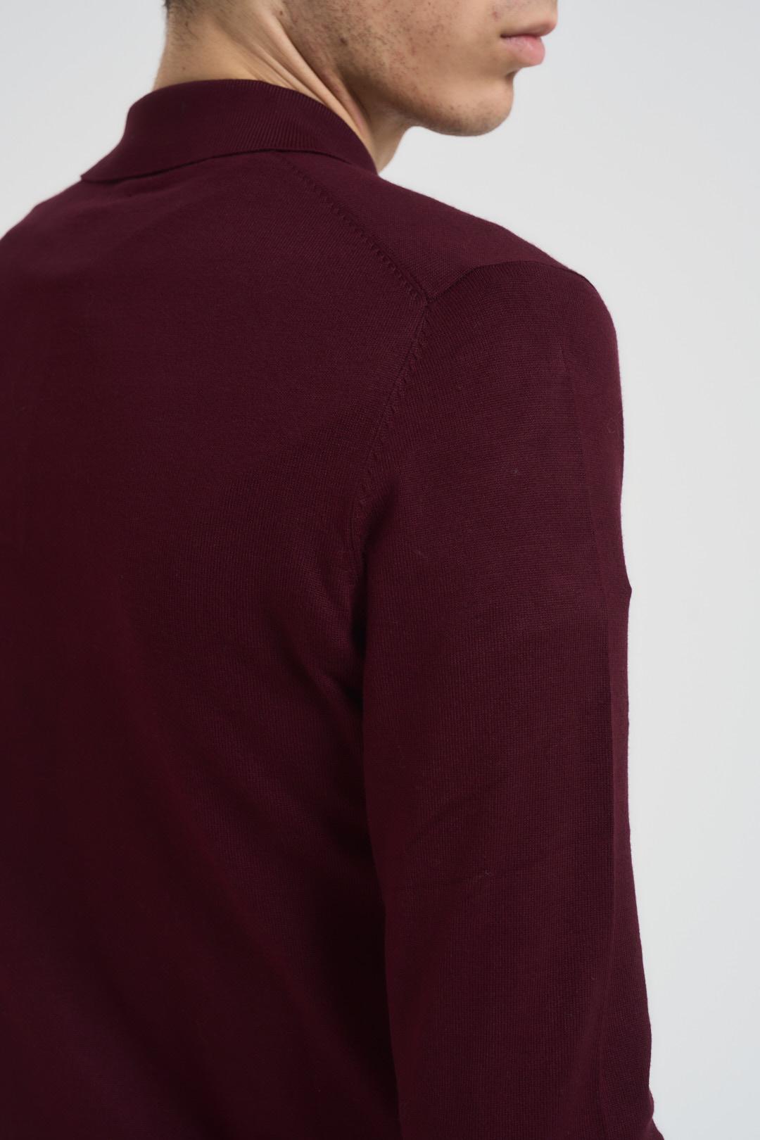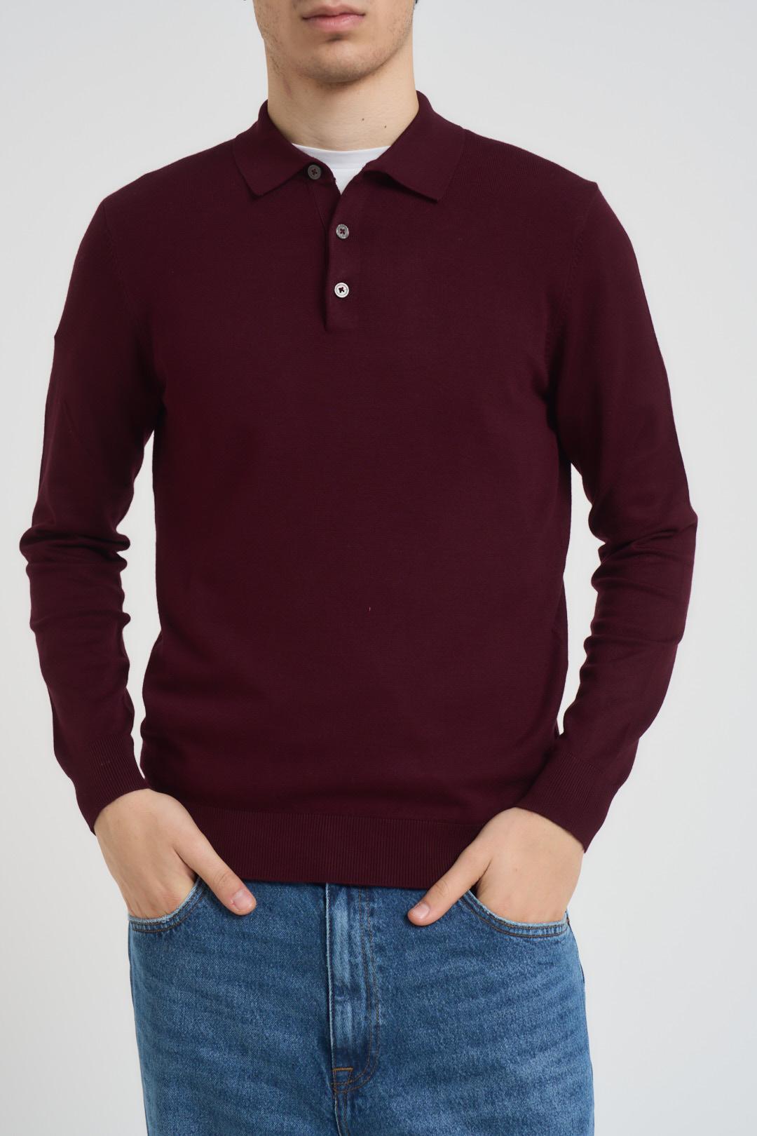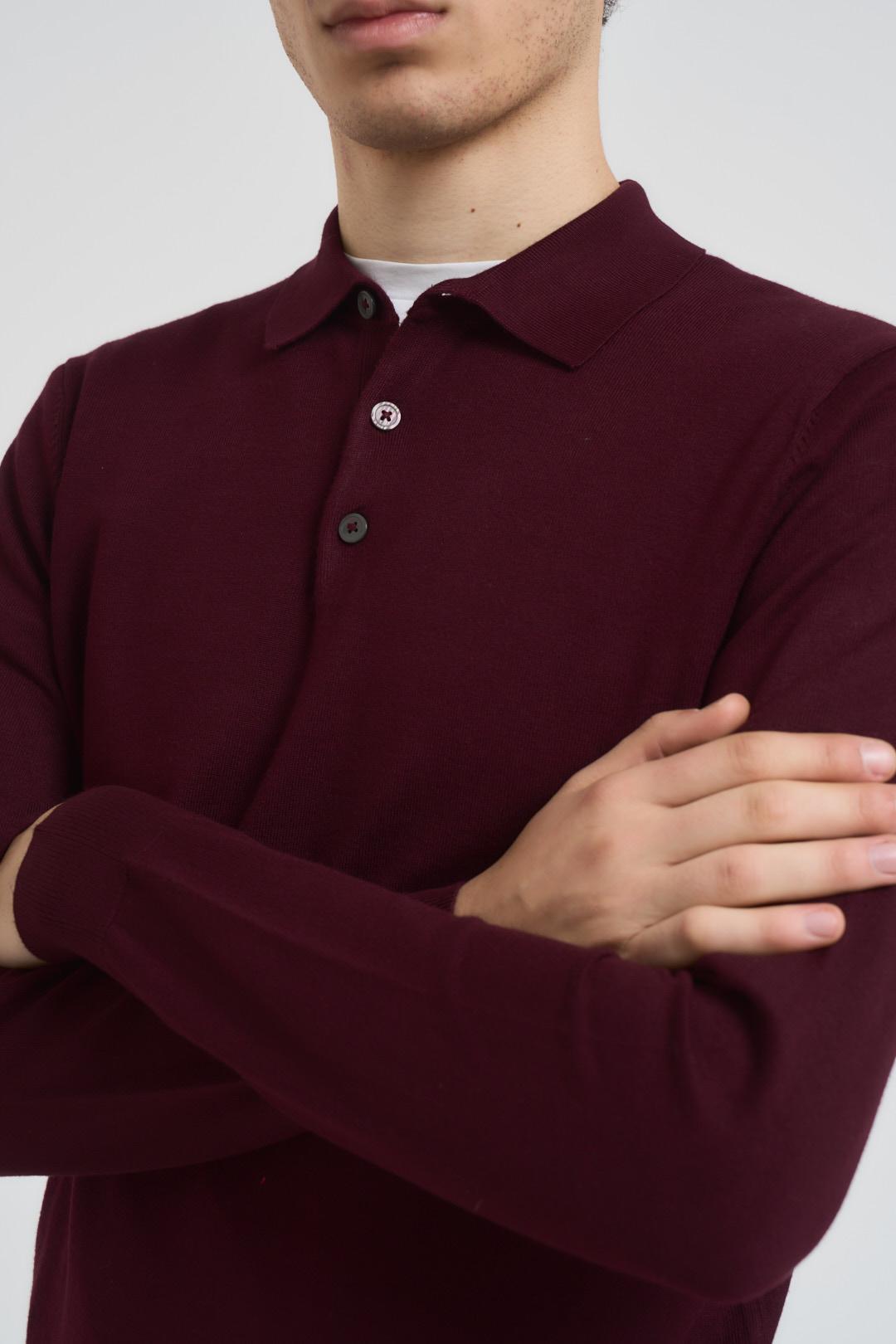 MARKUP Polo uomo con bottoni bordeaux. Modello con colletto classico e bottoni. Manica lunga. Polsini e orlo con lavorazione a costine. Composizione: 100% Cotone. Il modello è alto 190 cm e indossa la taglia L.