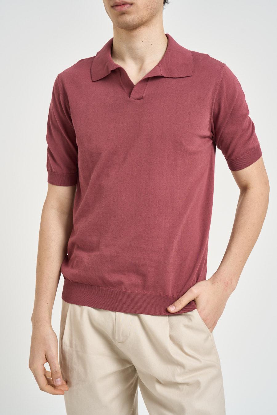 MASQ Polo uomo in maglia amarena. Modello a maniche corte con colletto classico e apertura frontale senza bottoni. Il capo presenta fondo e maniche rifiniti a costine che garantiscono una vestibilità confortevole e ordinata. Vestibilità regular. Composizione: 100% cotone. Il modello è alto 190 cm e indossa la taglia 50.