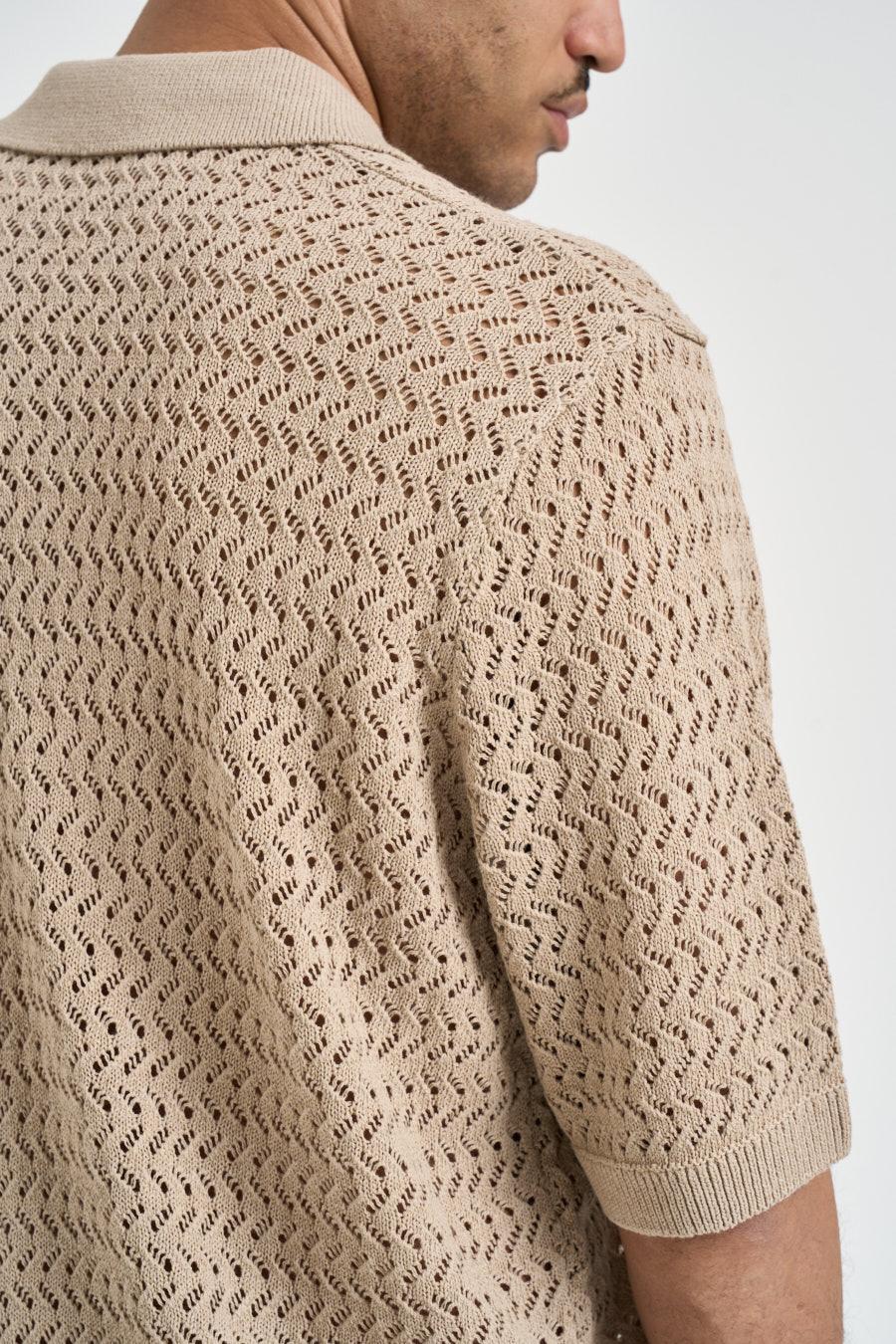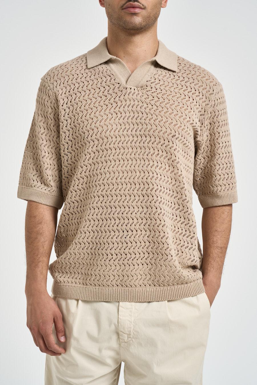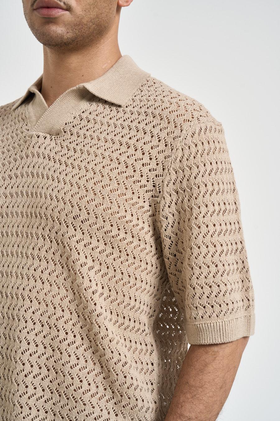 ONLY&SONS Polo uomo traforata beige. Modello regular fit, a manica corta, scollo a V. Composizione: 70% cotone 30% poliestere. Il modello è alto 183cm e indossa la taglia L.