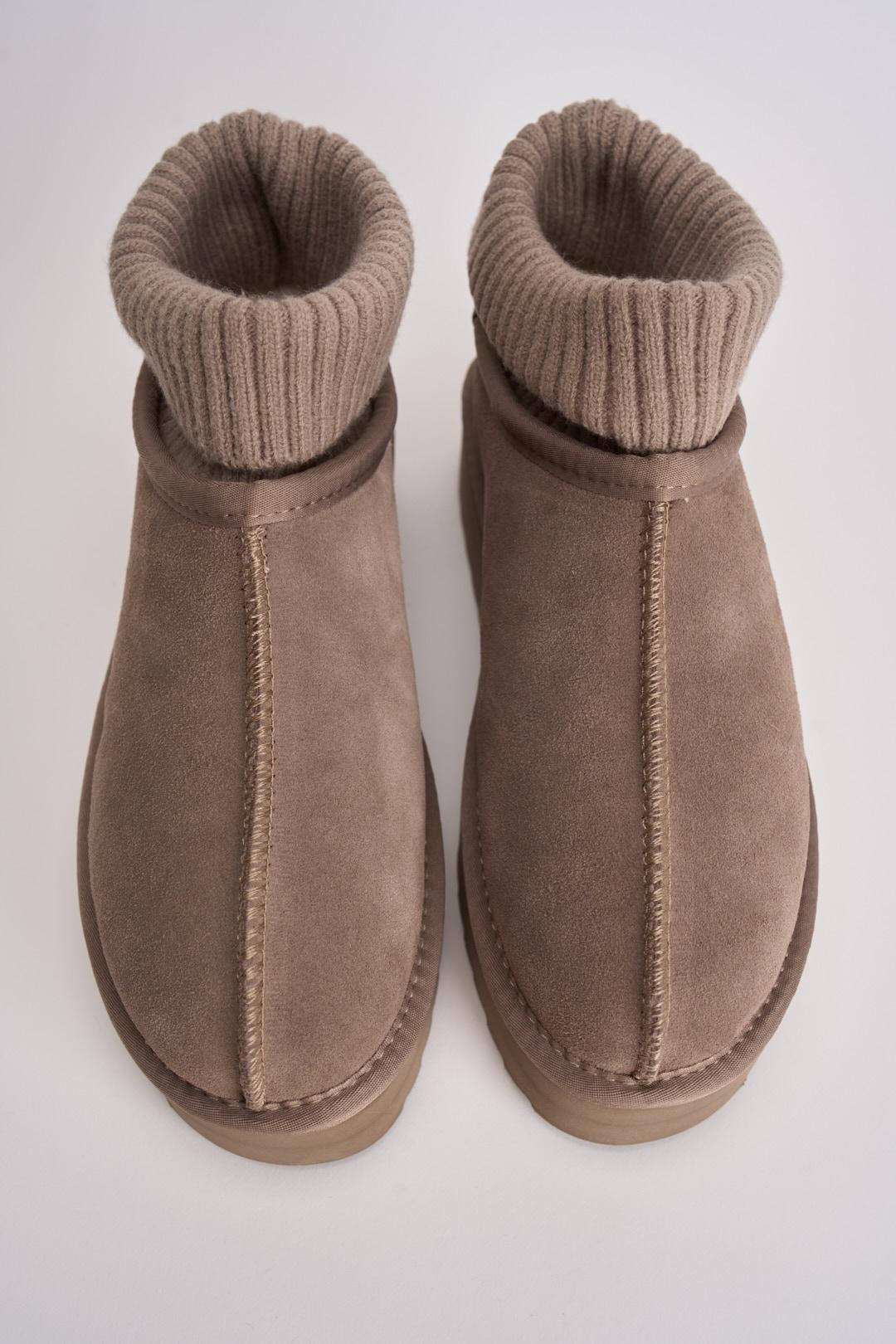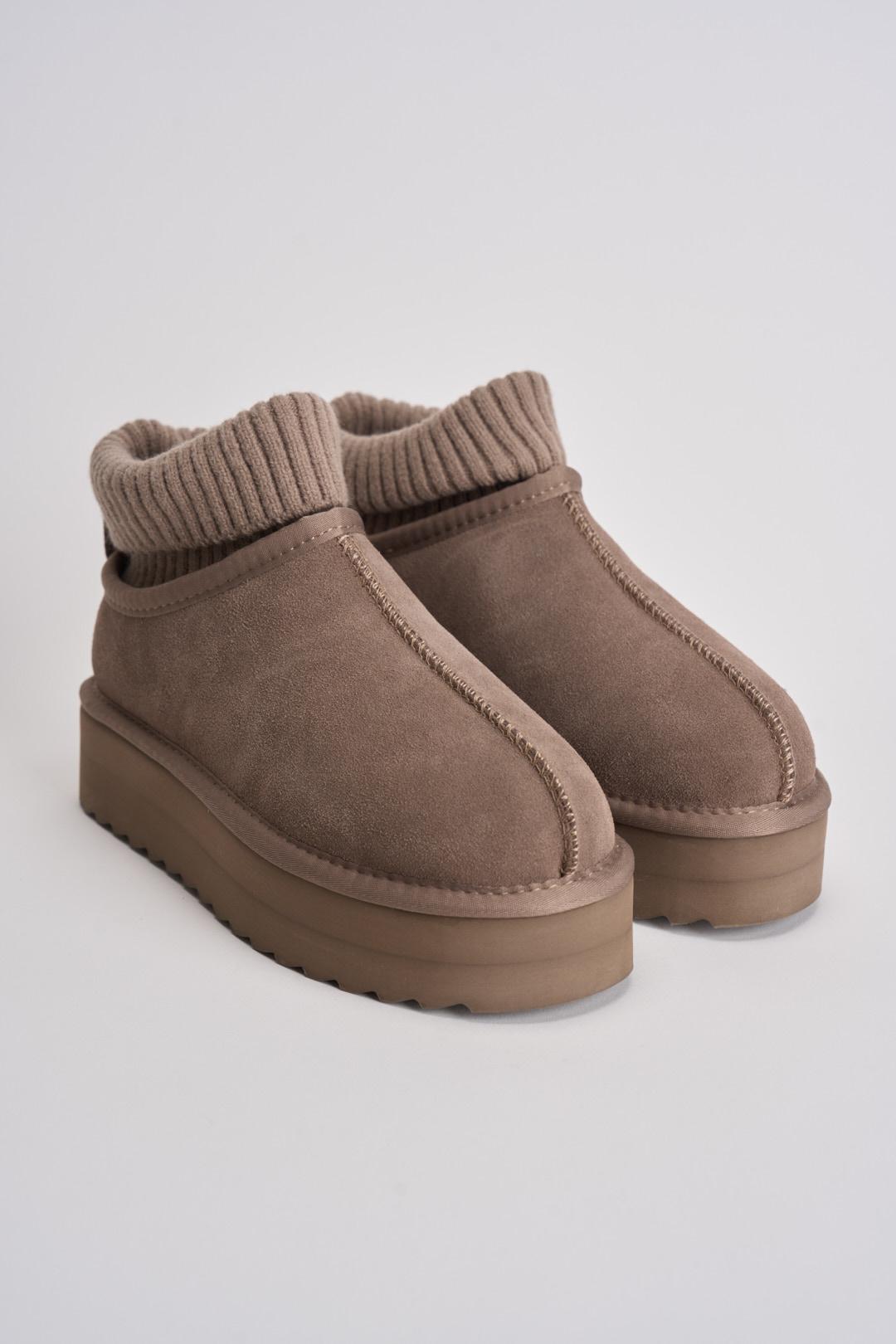 COLORS OF CALIFORNIA Stivale donna platform con calzino tortora. Modello con calzino incorporato a vista in morbido tessuto a costine.Tomaia: 100% in pelle scamosciata. Fodera: 50% Lana, 50% Poliestere. Sottopiede: 50% Lana, 50% Poliestere. Suola: 100% EVA. Altezza tacco: 3 cm davanti, 3 cm dietro. Altezza gambale: 5,5 cm. Logo sul retro. Calzata regolare.