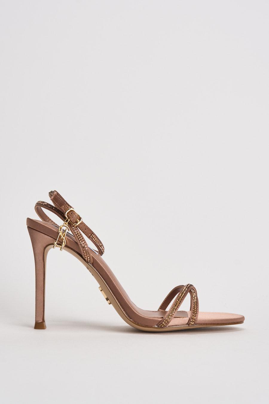 STEVE MADDEN Sandalo donna con tacco bronzo e strass. Modello punta arrotondata e dettaglio incrociato sul retro. Chiusura con cinturino alla caviglia. Altezza tacco: 10 cm. Calzata regolare.