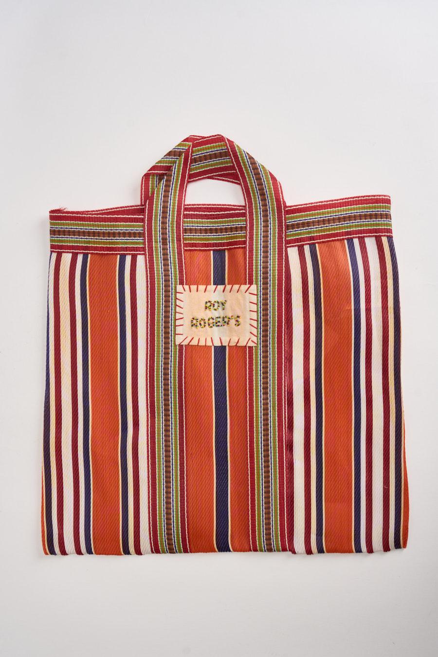 ROY ROGER'S Shopper donna a righe multicolor arancione. Modello Old Glory in nylon intrecciato multicolor, due manici superiori e patch con logo Roy Roger's ricamata sul fronte.. Scomparto interno con pratica chiusura a zip. Composizione: 100% nylon.