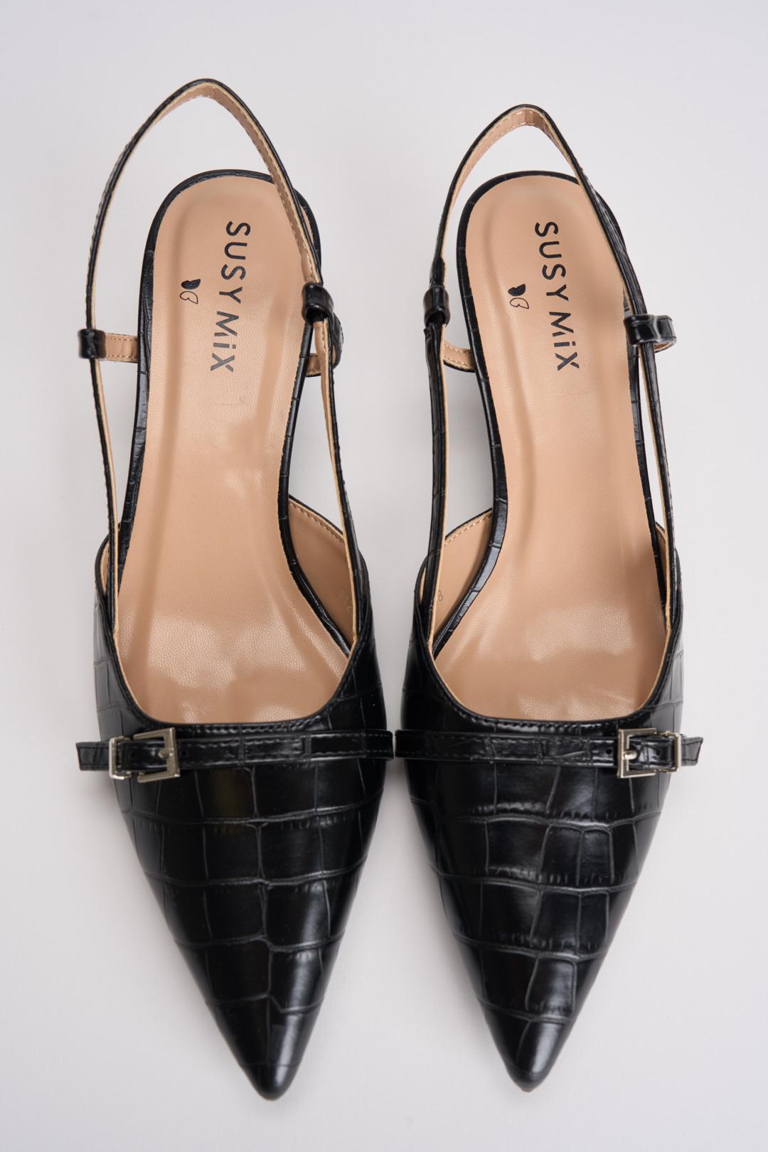 SUSY MIX Slingback donna pitonate nere. Modello con tacco 4cm, dettaglio cinturino sulla punta. Aperture laterali. Composizione: poliuretano.