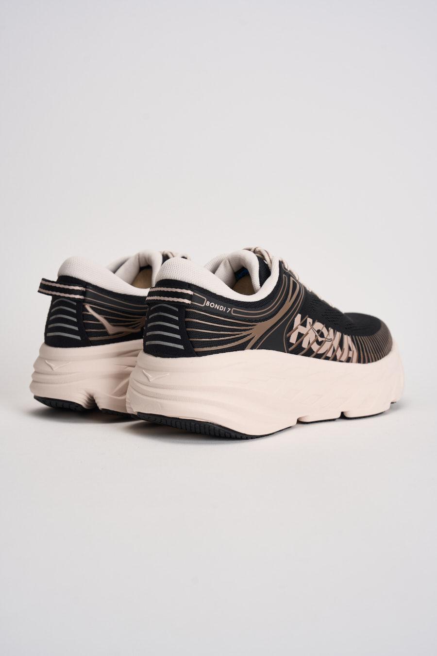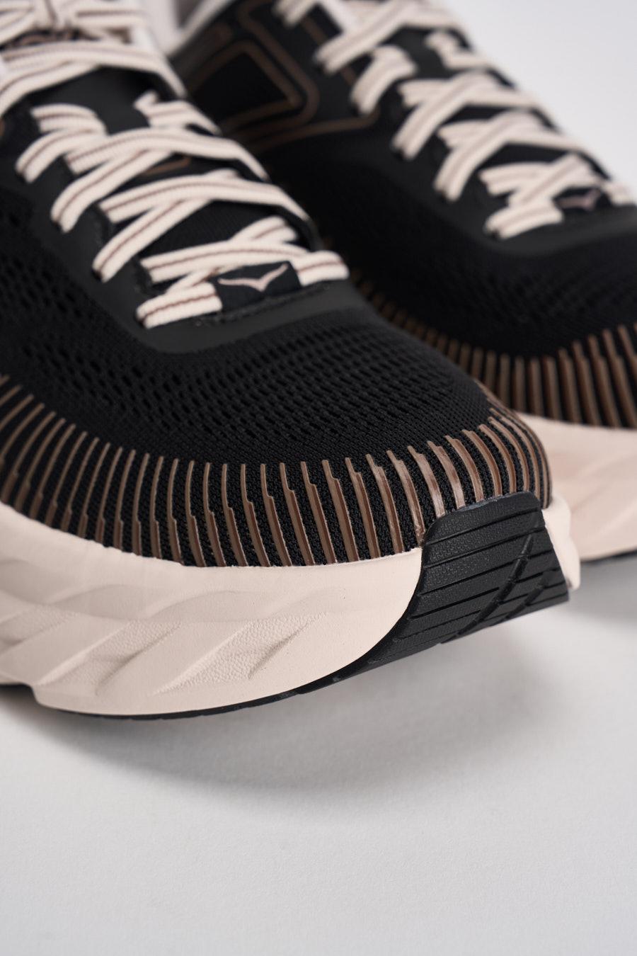 HOKA Sneakers donna Bondy 7 nera. Modello con tomaia vegana. Struttura a rete traspirante. Collarino in memory foam. Rinforzo in TPU. Composizione: 82% Tessuto, 18% sintetico. Interno: 100% Tessuto.Fondo: 82% Gomma, 18% EVA. Calzata regolare.