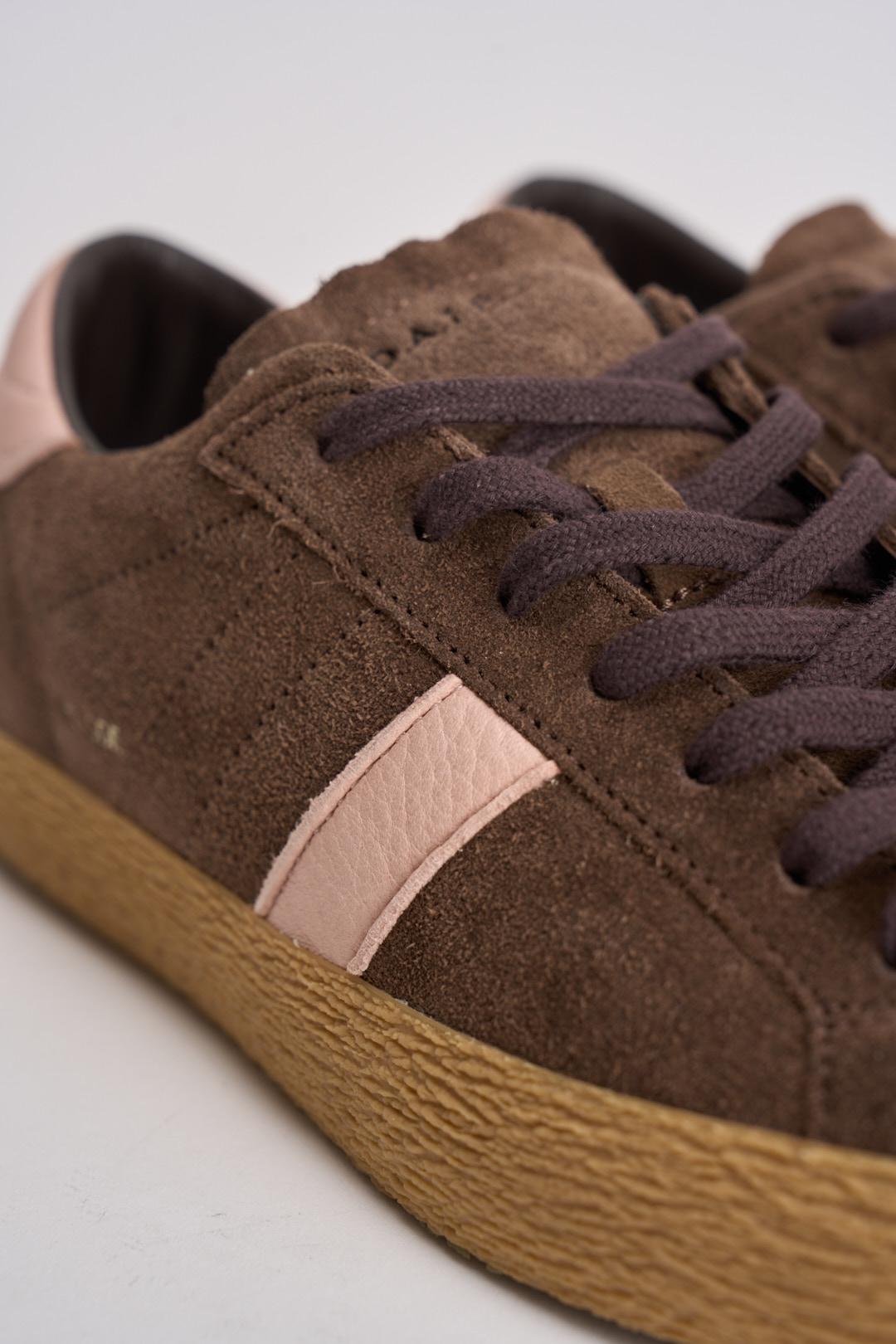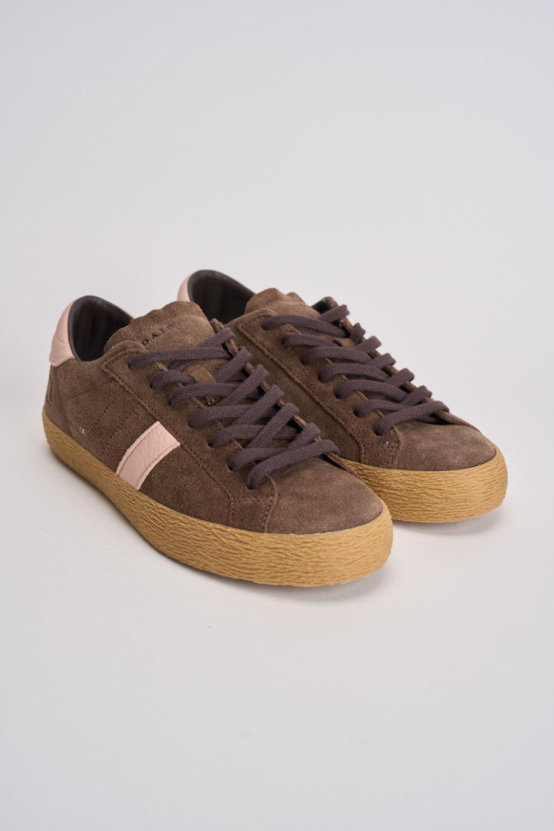 D.A.T.E Sneakers donna Hill Low in suede tortora. Modello con linguetta in suede con scritta D.A.T.E. impressa, lacci in cotone, logo quadrato lateralmente. Banda e talloncino posteriore in pelle rosa, fodera in pelle e spugna di cotone. Soletta interna rialzata di 2,5 cm e suola in gomma alta 2,5 cm. Calzata regolare.