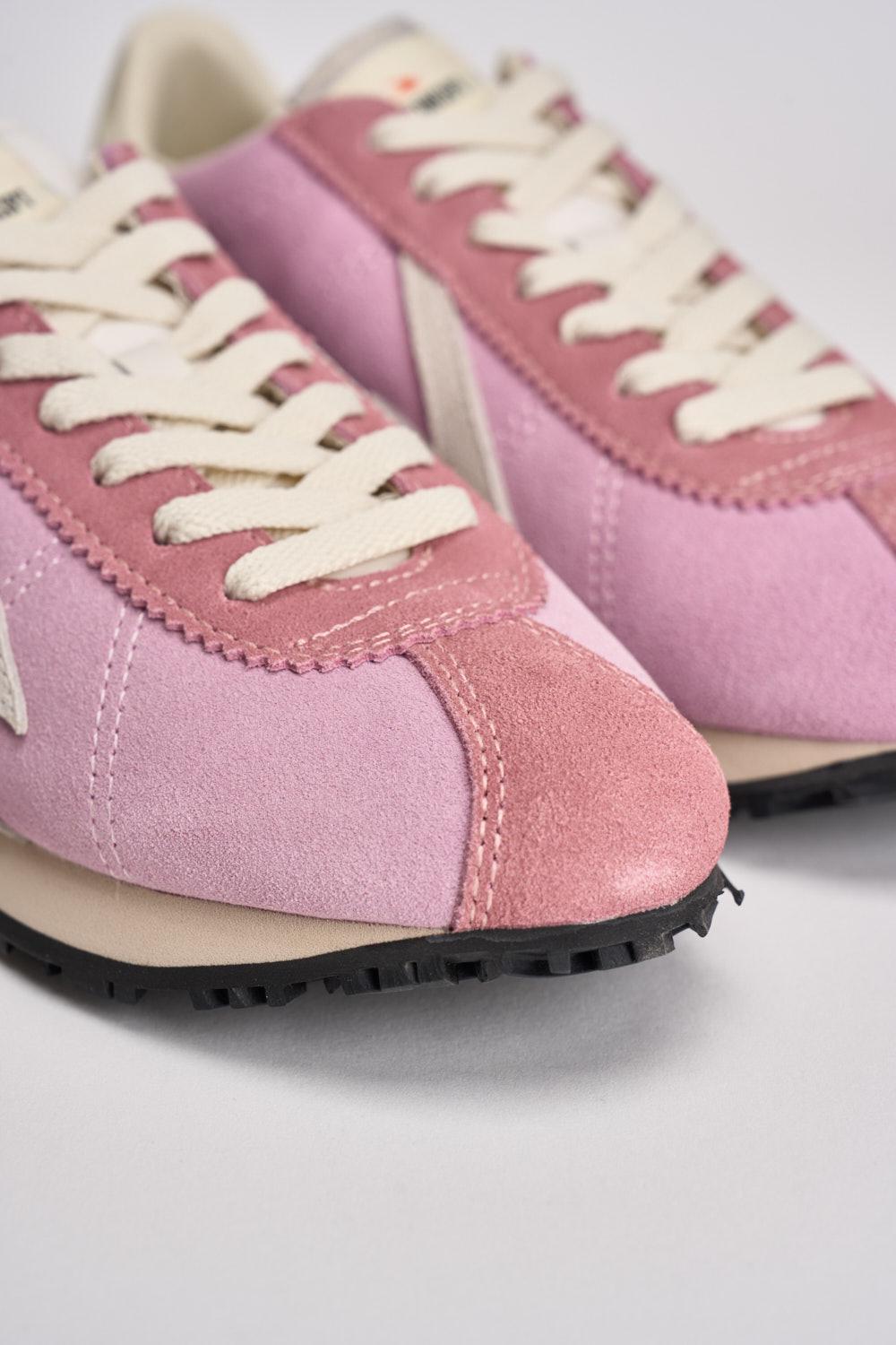 MOA Sneakers donna rosa e bianca. Modello in suede e inserti in pelle. Talloncino a contrasto in pelle bianca e logo bianco laterale. Linguetta tessuto imbottito per comfort. Lacci piatti in cotone bianco. Intersuola: EVA per ammortizzazione. Suola in gomma nera con battistrada dentellato per grip. Composizione: pelle e camoscio. Calzata regolare.