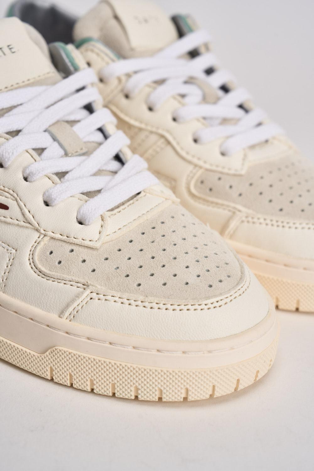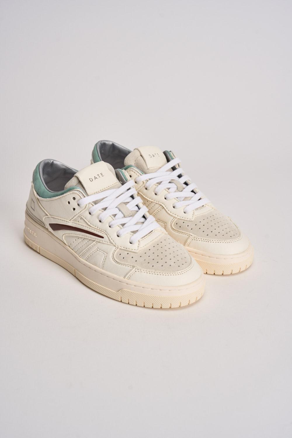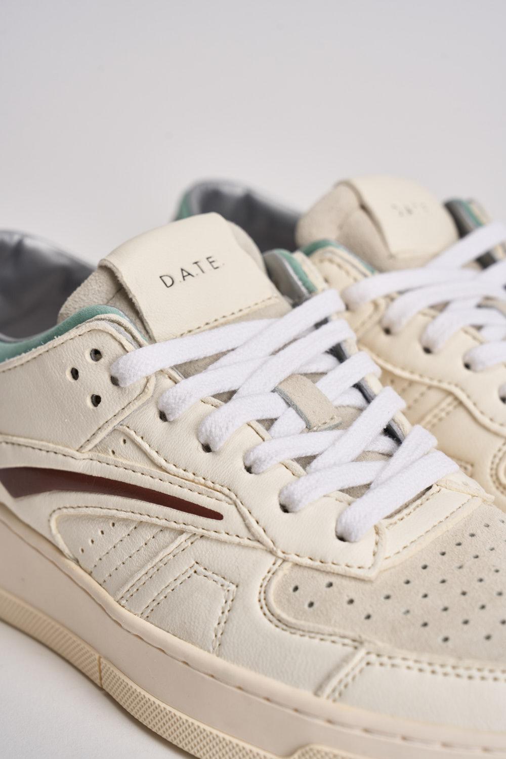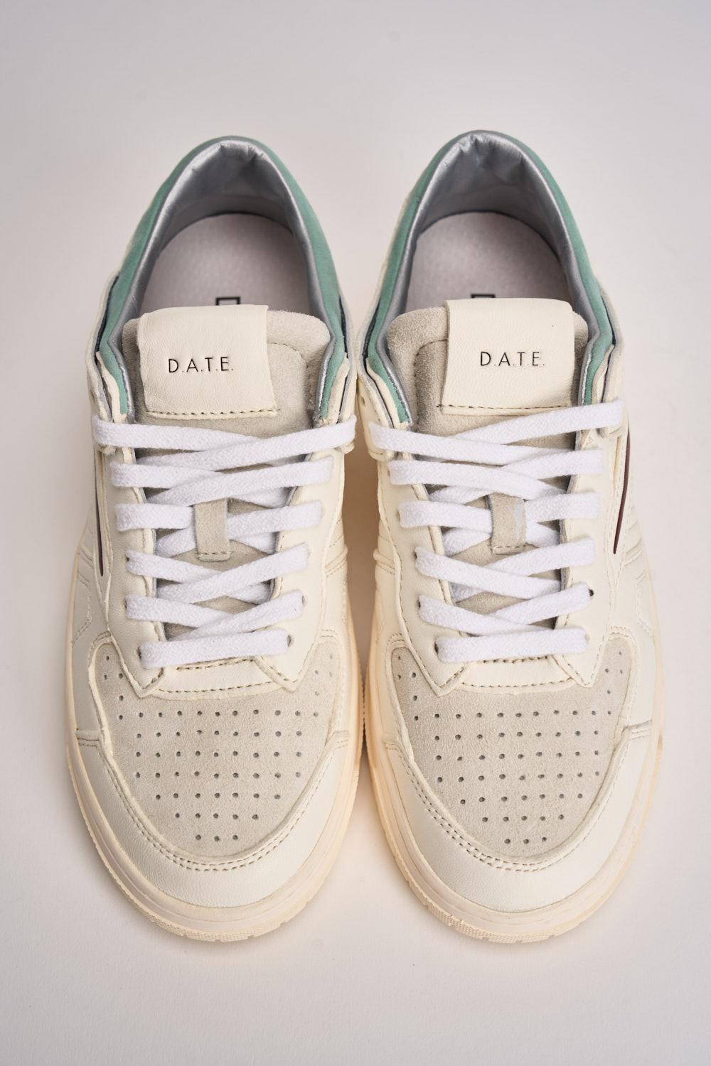 D.A.T.E Sneakers donna Torneo bianche e menta. Sulla linguetta è impressa la scritta D.A.T.E. I lacci sono in cotone e il logo quadrato è impresso lateralmente. Dettaglio laterale in pelle marrone. La soletta interna di 2.5 cm. Composizione: 100% pelle.