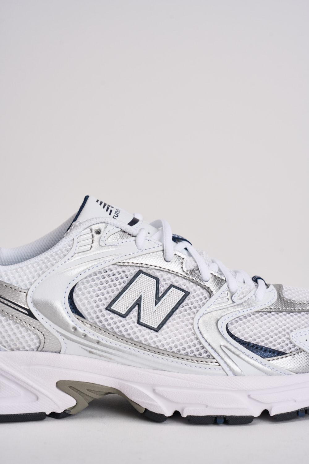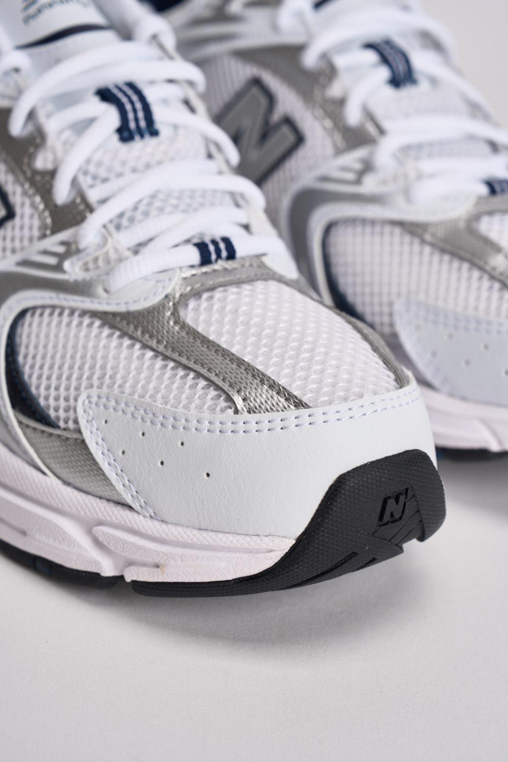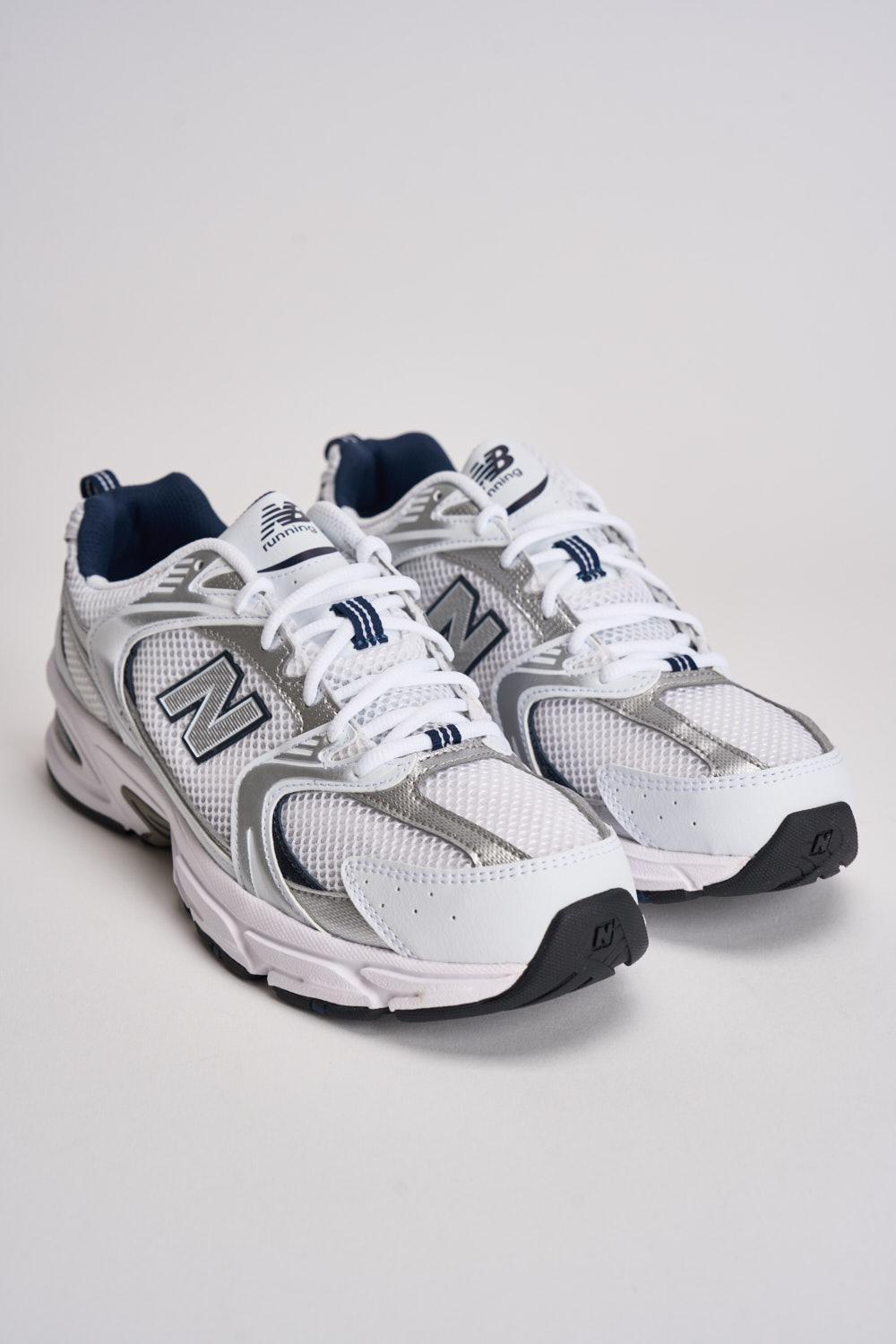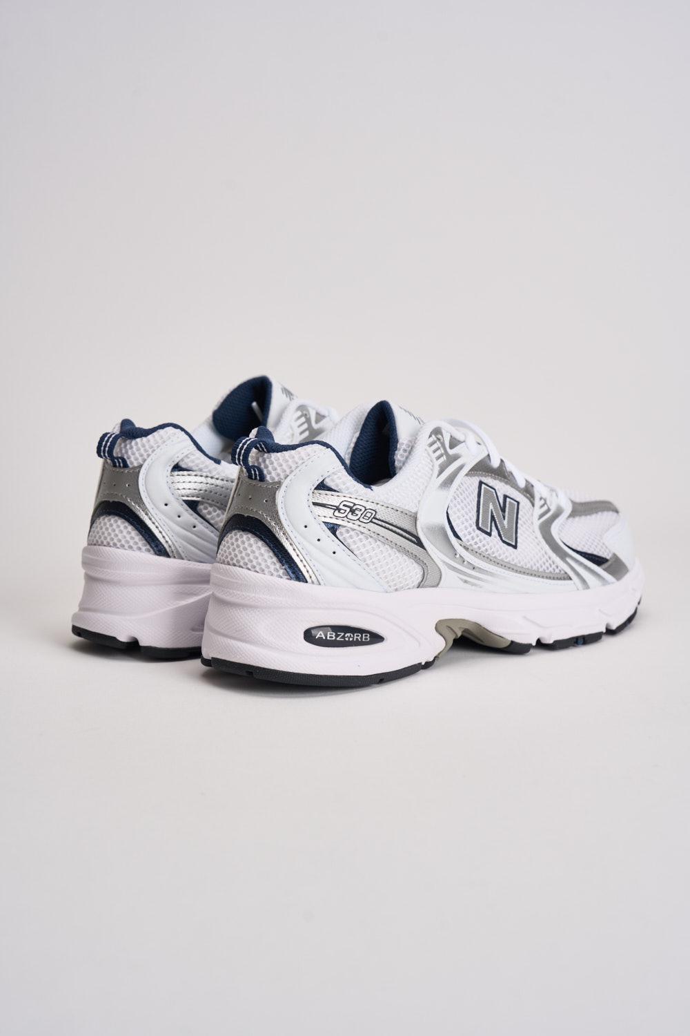 NEW BALANCE Sneakers uomo 530 bianca e blu. L'intersuola ABZORB assorbe gli impatti grazie alla combinazione di ammortizzazione e resistenza alla compressione. Tomaia in pelle. Chiusura con lacci. 346 gr.