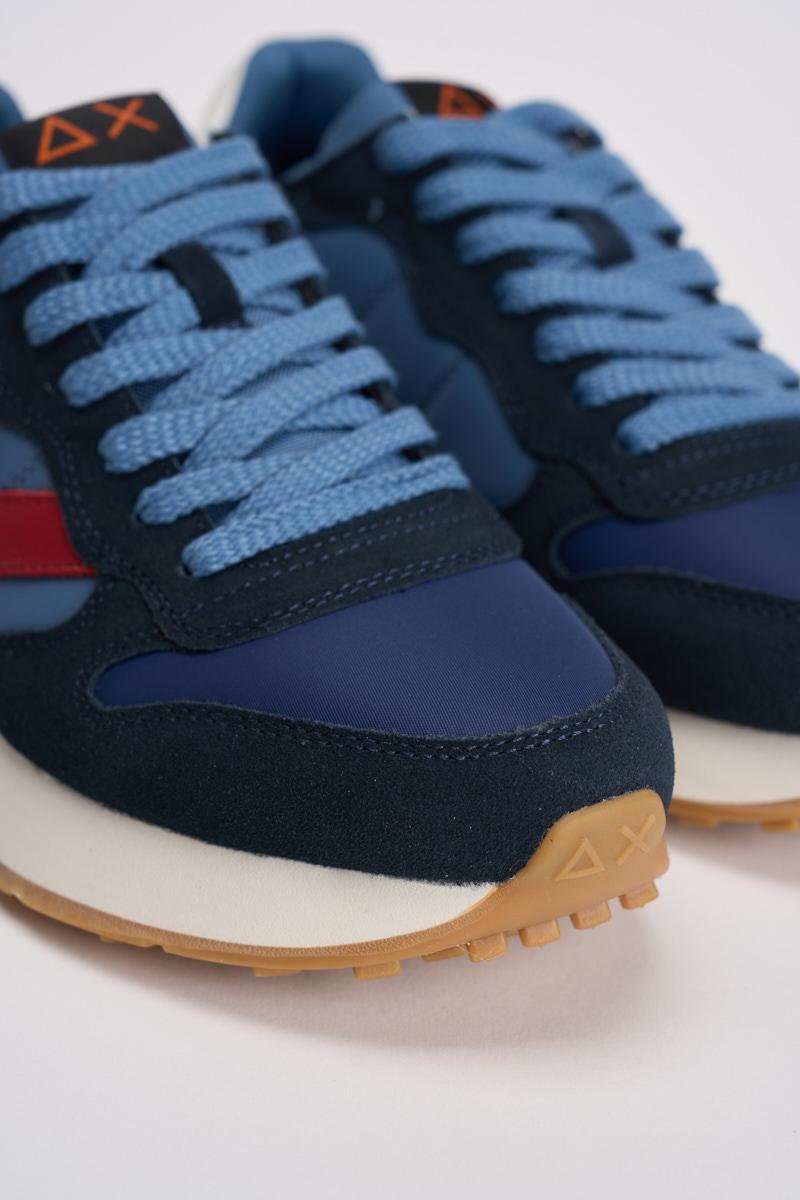 SUN68 Sneakers uomo blu. Modello con tomaia in nylon e inserti in camoscio blu notte. Logo bianco laterale ricamato a contrasto con il rosso. Lacci celesti. Suola in eva e intersuola di colore nero. Composizione: 52% Pelle 45% Tessile 3% Poliuretano. Calzata regolare.
