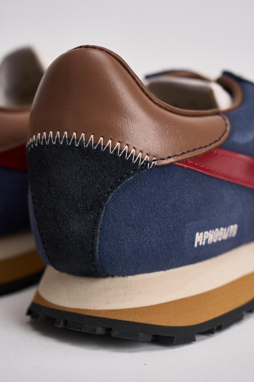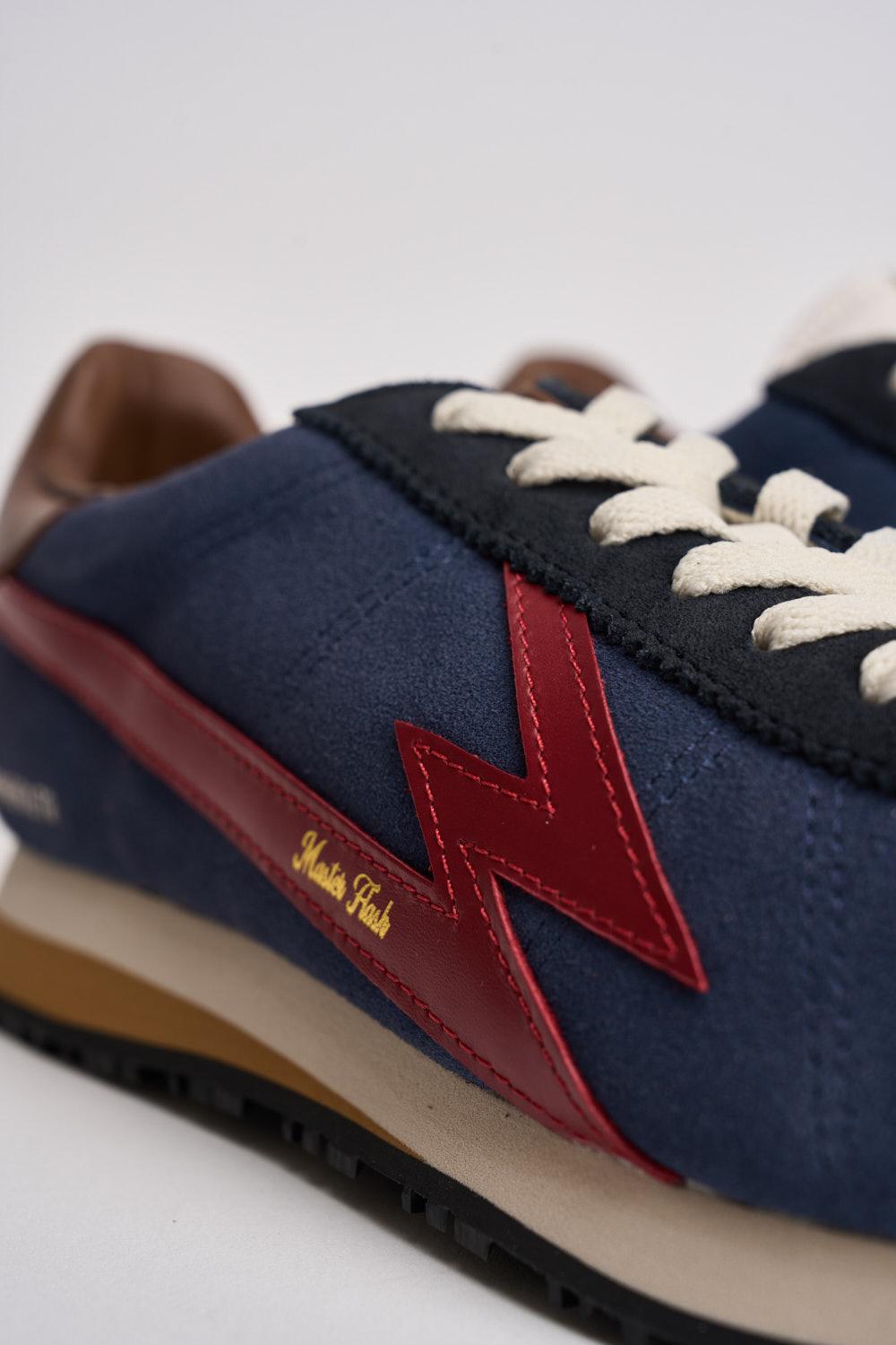 MOA Sneakers uomo blu e rossa. Modello in suede e inserti in pelle. Talloncino a contrasto in pelle marrone e logo bianco laterale. Linguetta tessuto imbottito per comfort. Lacci piatti in cotone bianco. Intersuola: EVA per ammortizzazione. Suola in gomma nera con battistrada dentellato per grip. Composizione: pelle e camoscio. Calzata regolare.
