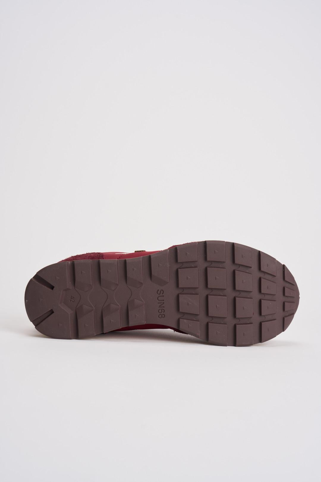 SUN68 Sneakers uomo bordeaux e bianche. Modello con talloncino in pelle bianco. Tomaia in pelle e suede, soletta estraibile in lattice e tessuto. Ricamo logo laterale in bianco, suola in gomma con scritta Run Faster. Calzata regolare.
