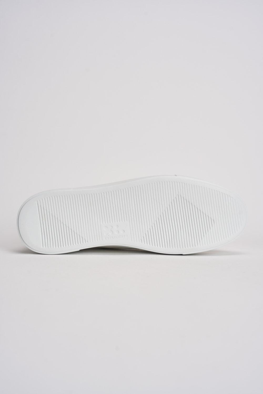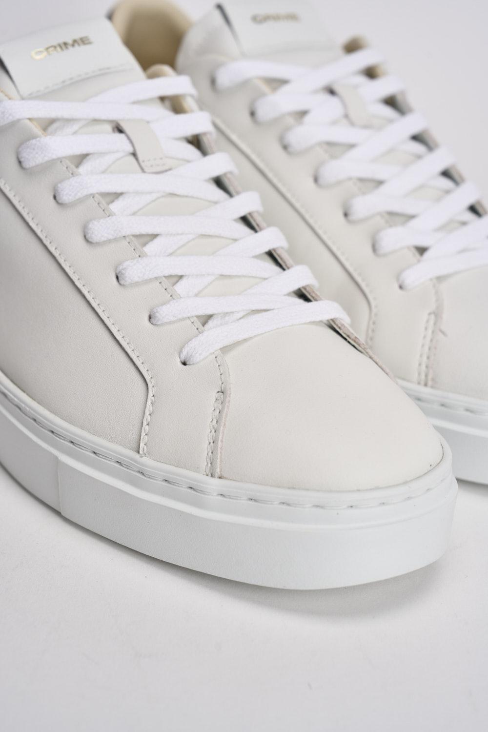 CRIME LONDON Sneakers uomo in pelle bianche e blu. Modello in pelle con plantare estraibile e suola extralight® cucita in gomma. Linguetta con label in pelle logata. Calzata regolare.