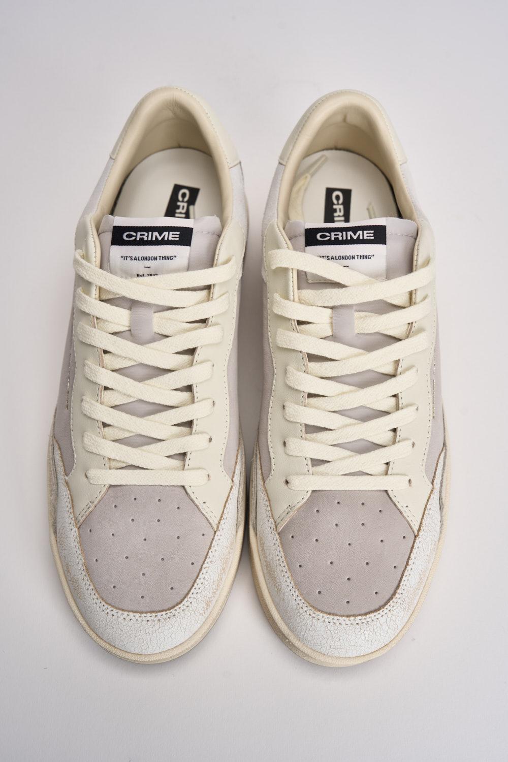 CRIME LONDON Sneakers uomo in suede grigio e bianche. Modello in pelle bianca con inserti in suede e talloncino bianco. Linguetta in pelle bianca con etichetta logata. Calzata regolare.