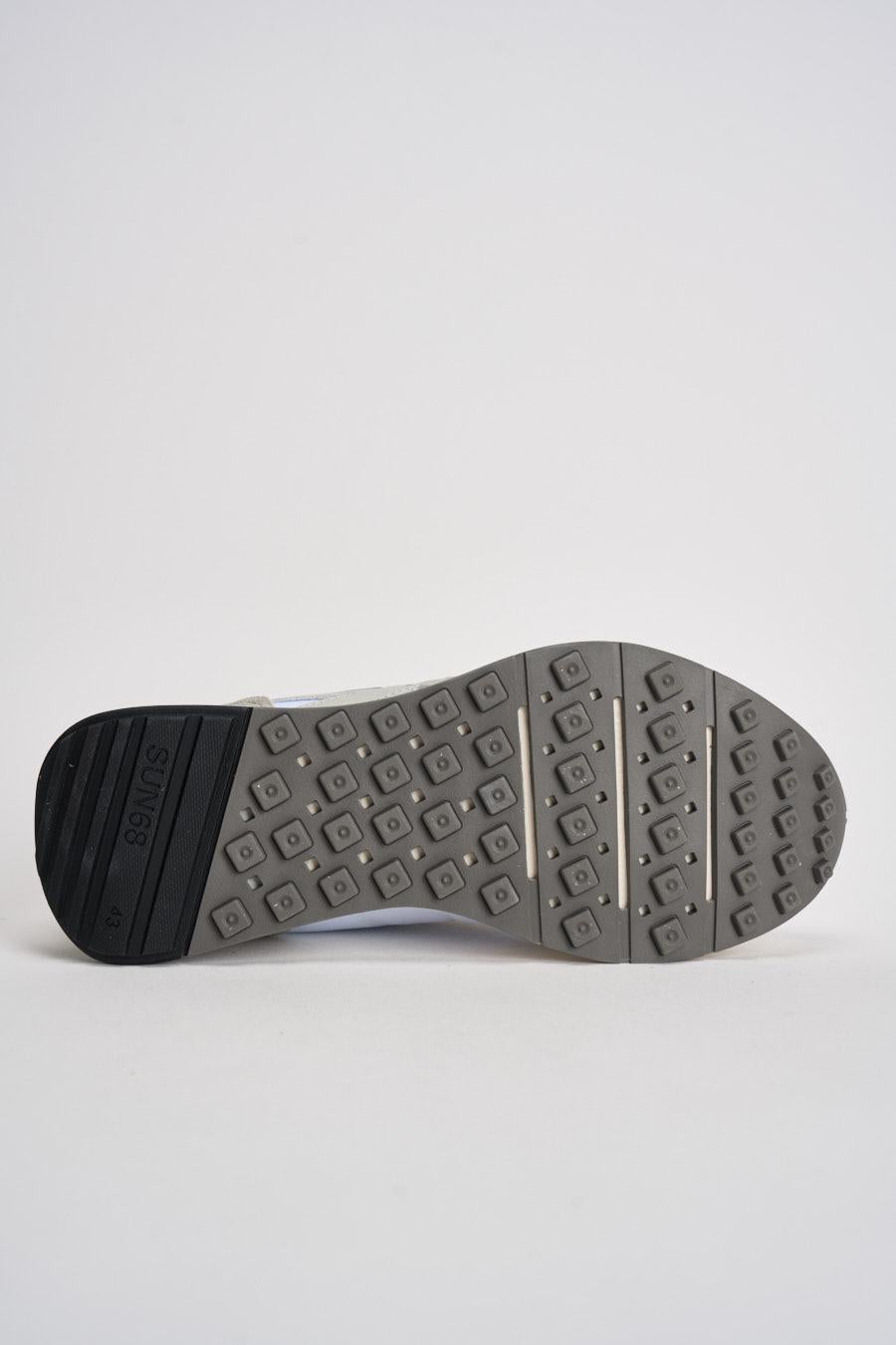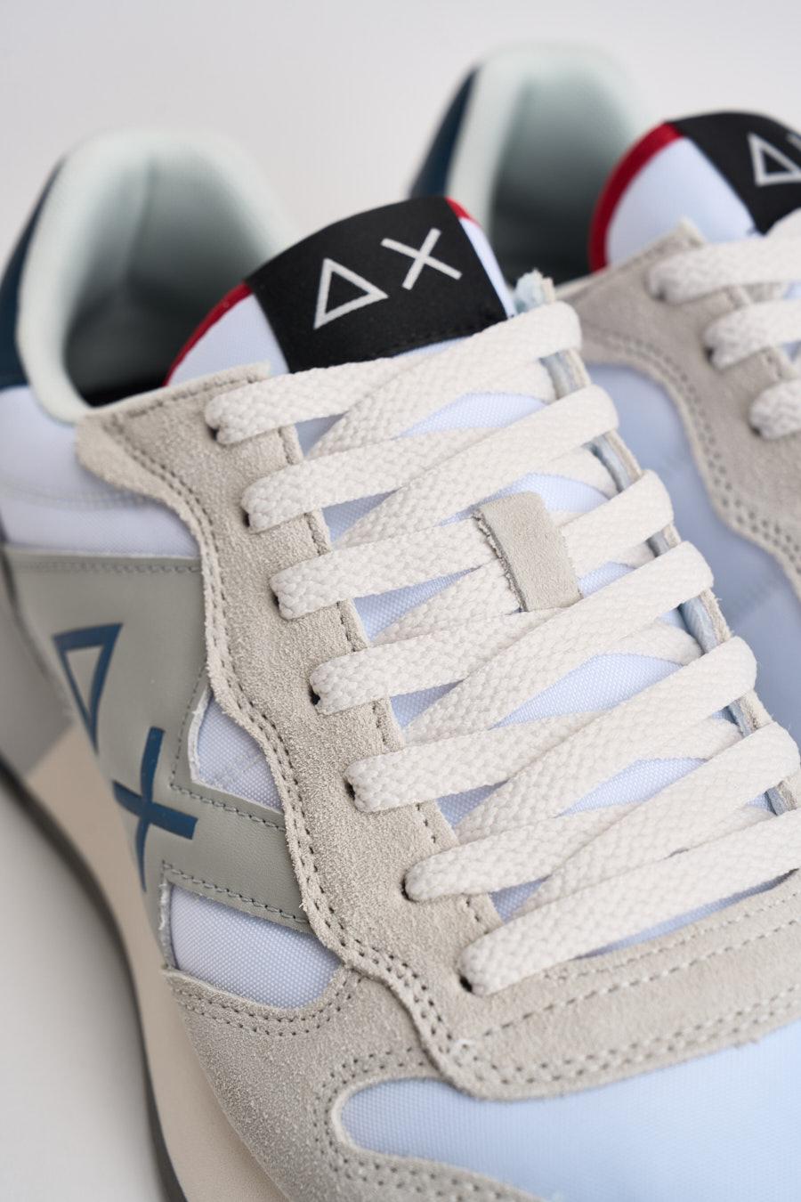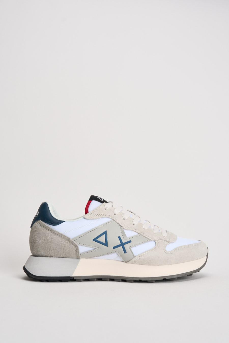 SUN68 Sneakers uomo in suede grigio e blu. Modello con inserti in pelle bianca, traspirante e leggera, suola ammortizzata. Logo Sun 68 in contrasto blu laterale, fondo gomma, plantare interno estraibile. Talloncino in pelle blu con logo bianco. Composizione: camoscio e tessuto. Calzata preciso.