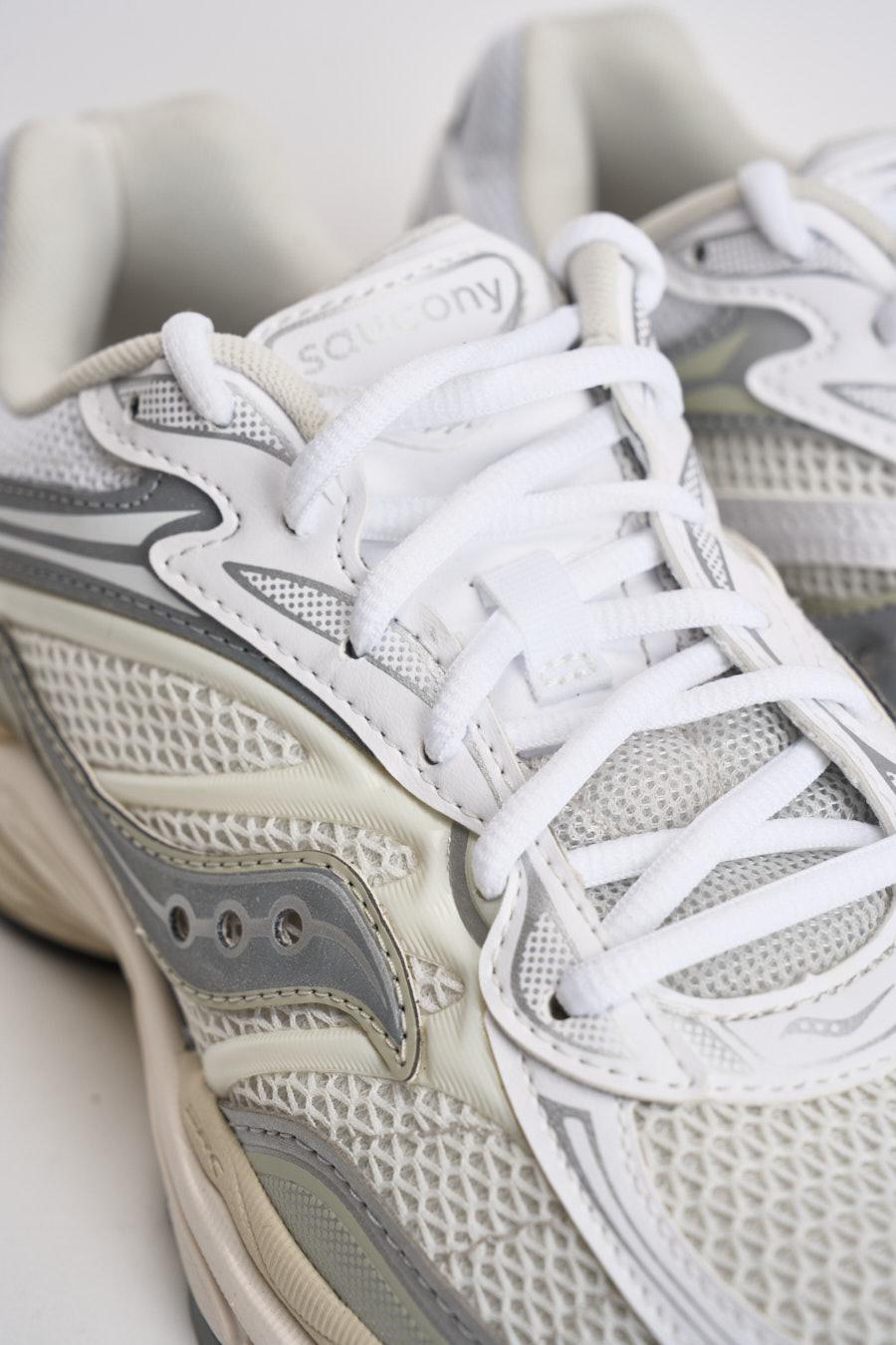 SAUCONY Sneakers uomo Pogrid omni 9 grigia. Modello con mesh traspirante e dettagli sintetici. Il rivestimento e il sottopiede in materiali riciclati aggiungono un tocco di sostenibilità. Chiusura allaccio. Caratteristiche scarpa resistente allo scivolamento. Forma punta a mandorla. Materiale: Pelle. Calzata regolare.