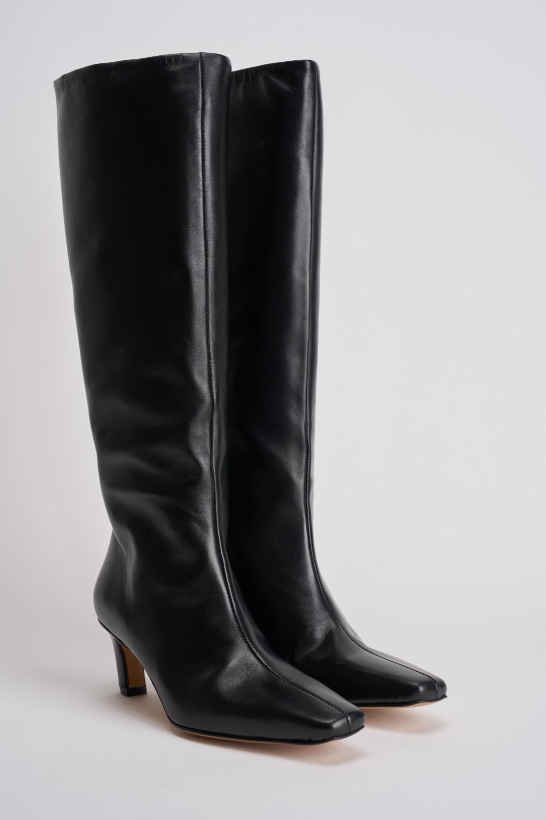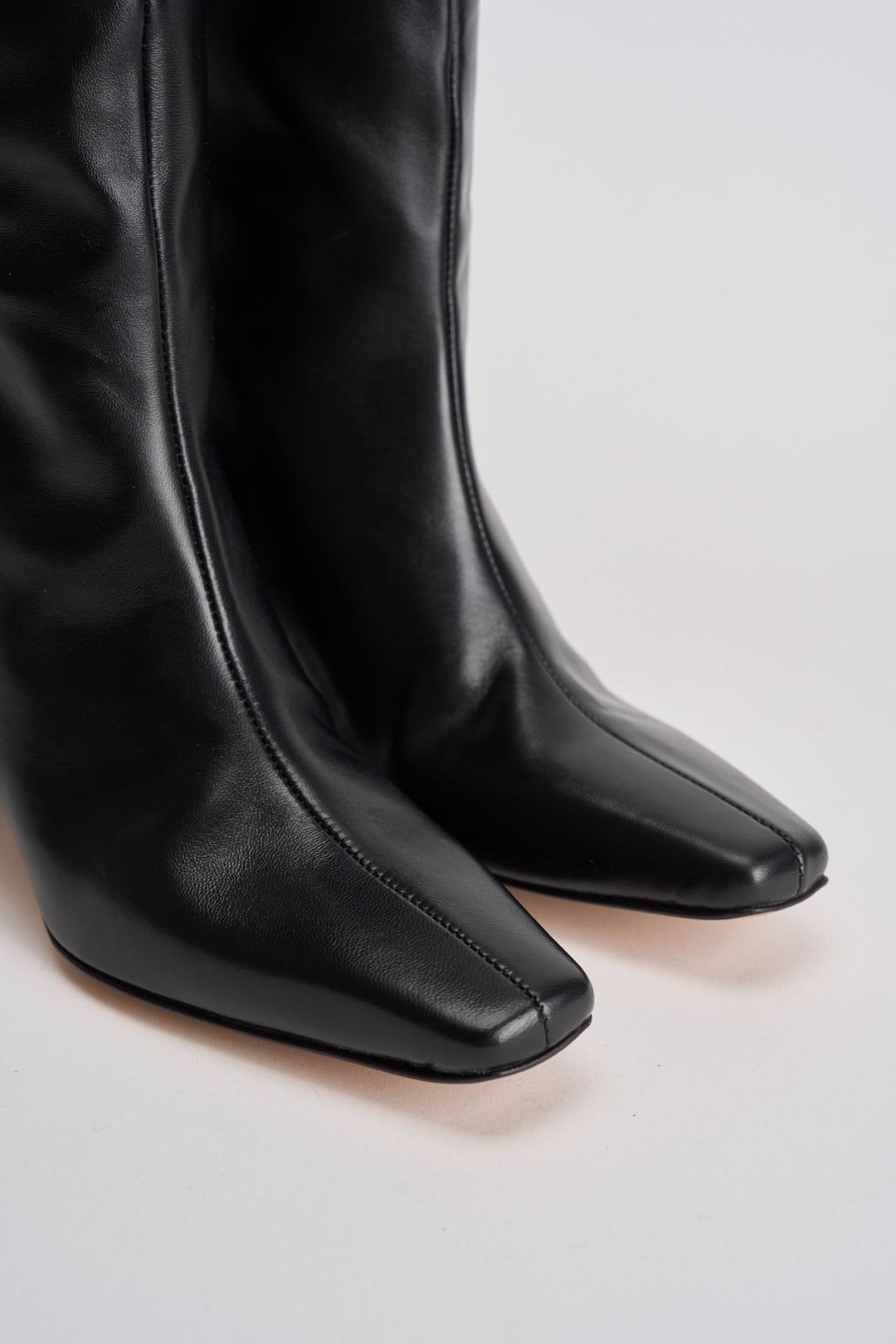OVYE Stivale donna in pelle nero. Modello a punta quadrata con altezza tacco di 6cm. Gambale medio largo. Composizione: pelle. Calzata regolare.