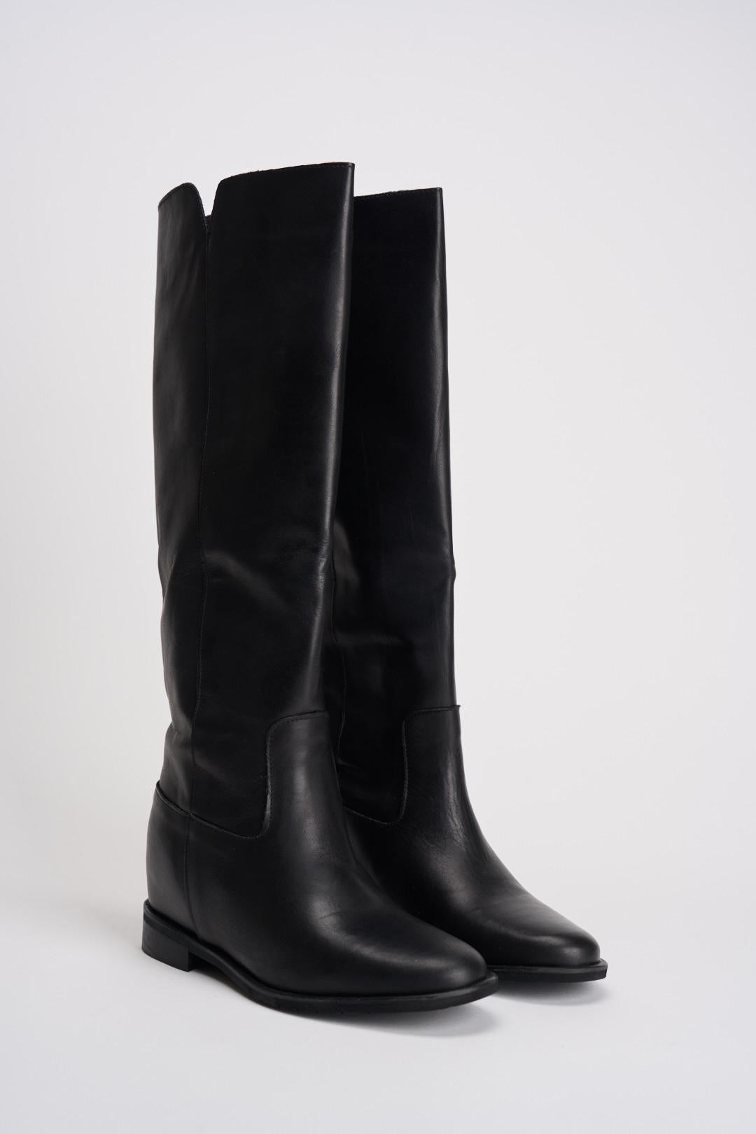 DIVINE FOLLIE Stivale in pelle nero. Stivale lungo sotto al ginocchio in pelle nero. Rialzo. Tacco 3 cm. Calzata regolare. Vera pelle.