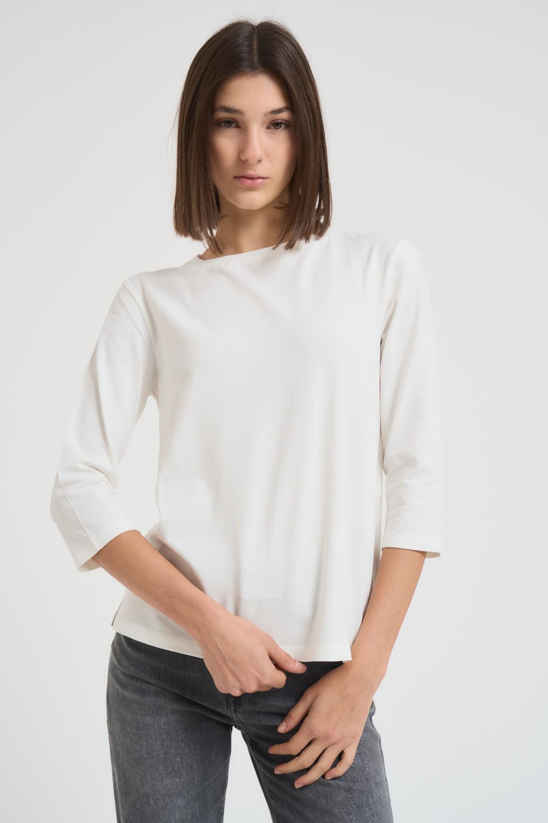 MAX MARA WEEKEND T-shirt con maniche 3/4 donna bianca. Girocollo. Composizione: 95% cotone 5% elastan. La modella è alta 176 cm e indossa la tg S.