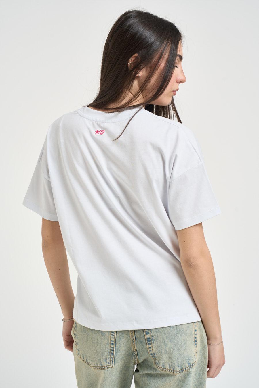 SUPERCULTURE T-shirt donna con ricamo bianca. Modello regular fit. Manica corta. Scritta ricamata a contrasto sul lato sinistro. Girocollo. Composizione: 100% cotone. La modella è alta 172 cm e indossa la taglia S.
