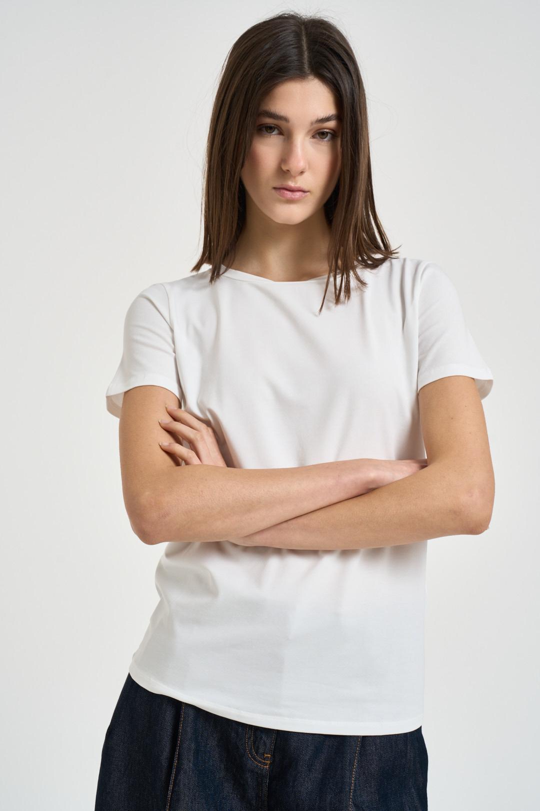MAX MARA WEEKEND T-shirt donna girocollo bianca. Modello regular fit. Manica corta. Composizione: 95% cotone, 5% elastane. La modella è alta 176cm e indossa la taglia S.