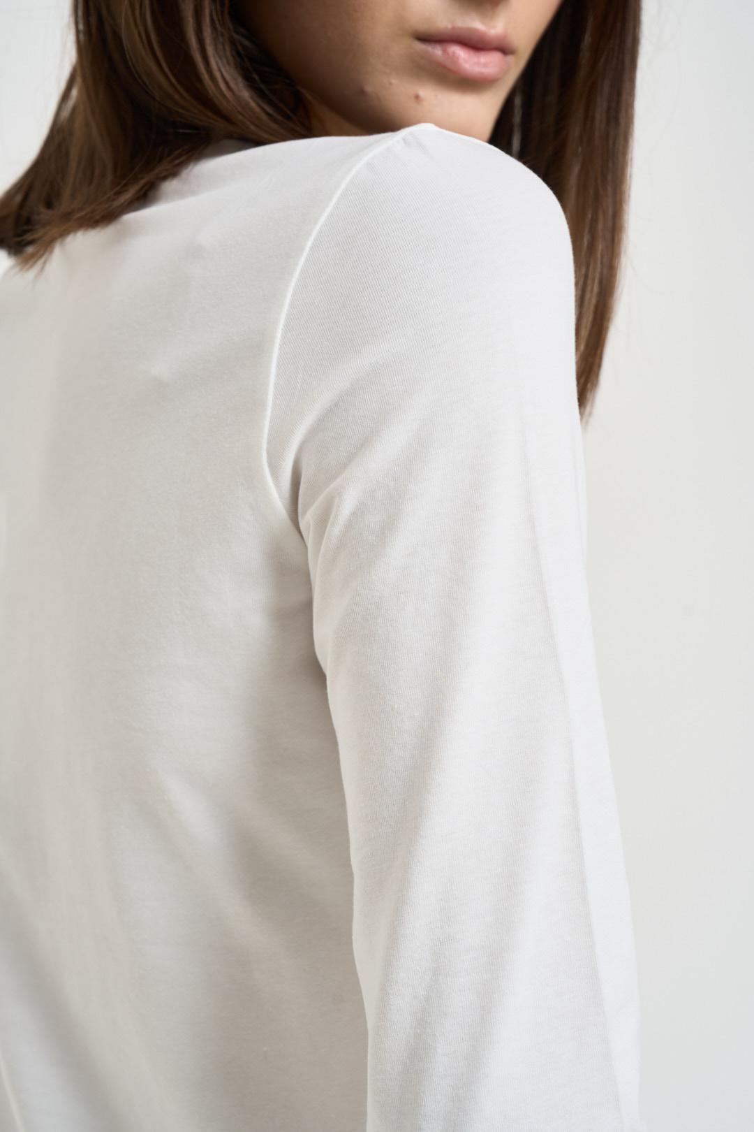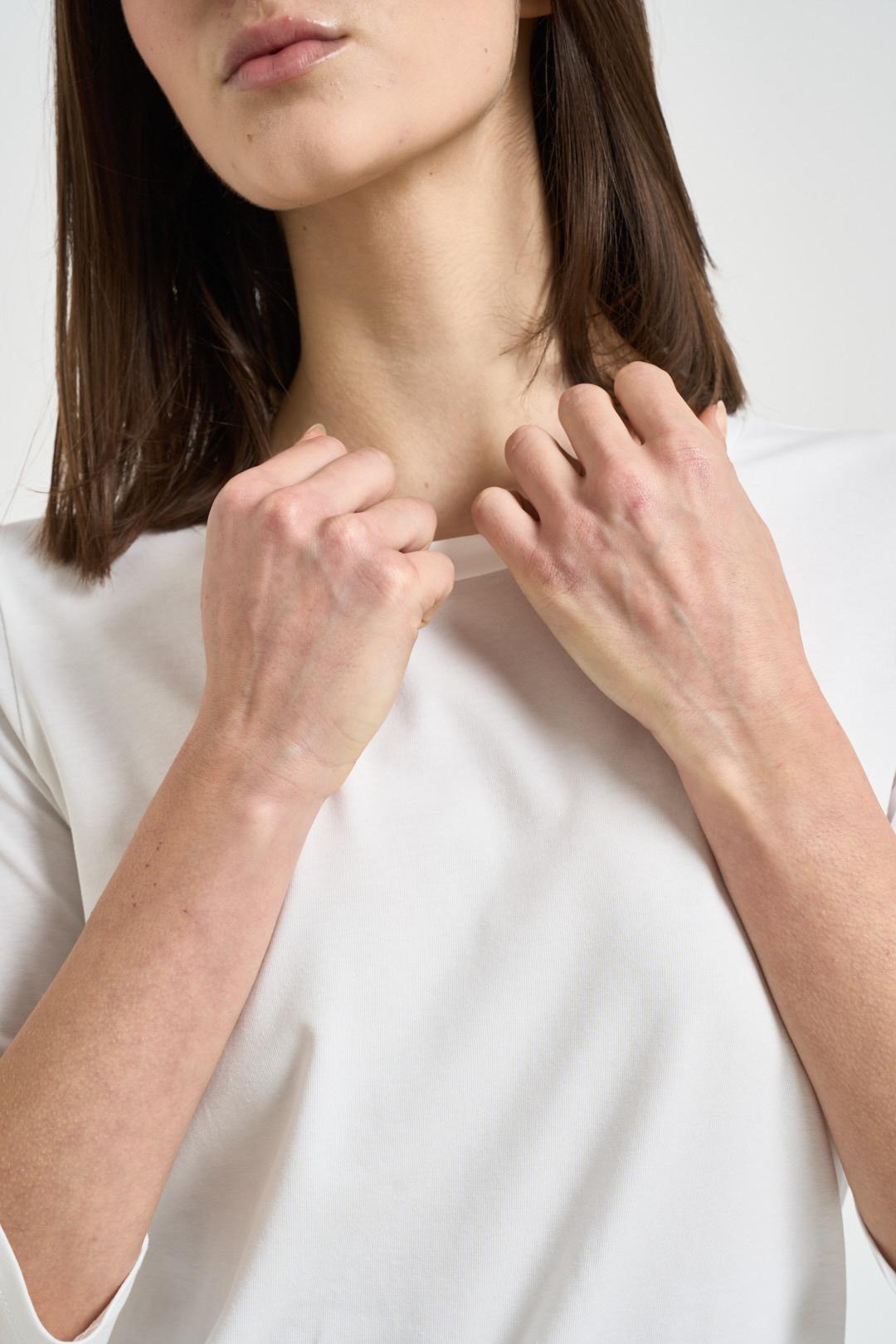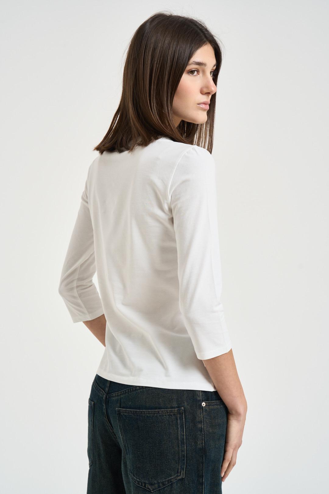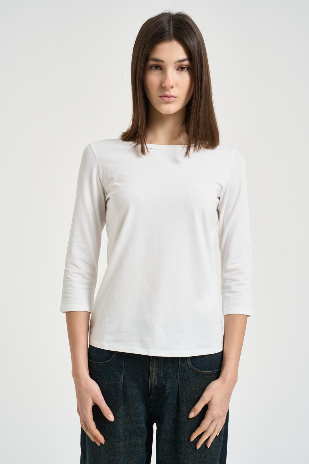 MAX MARA WEEKEND T-shirt donna maniche 3/4 bianca. Modello a girocollo, regular fit. Composizione: 95% cotone 5% elastan. La modella è alta 176 cm e indossa la tg S.