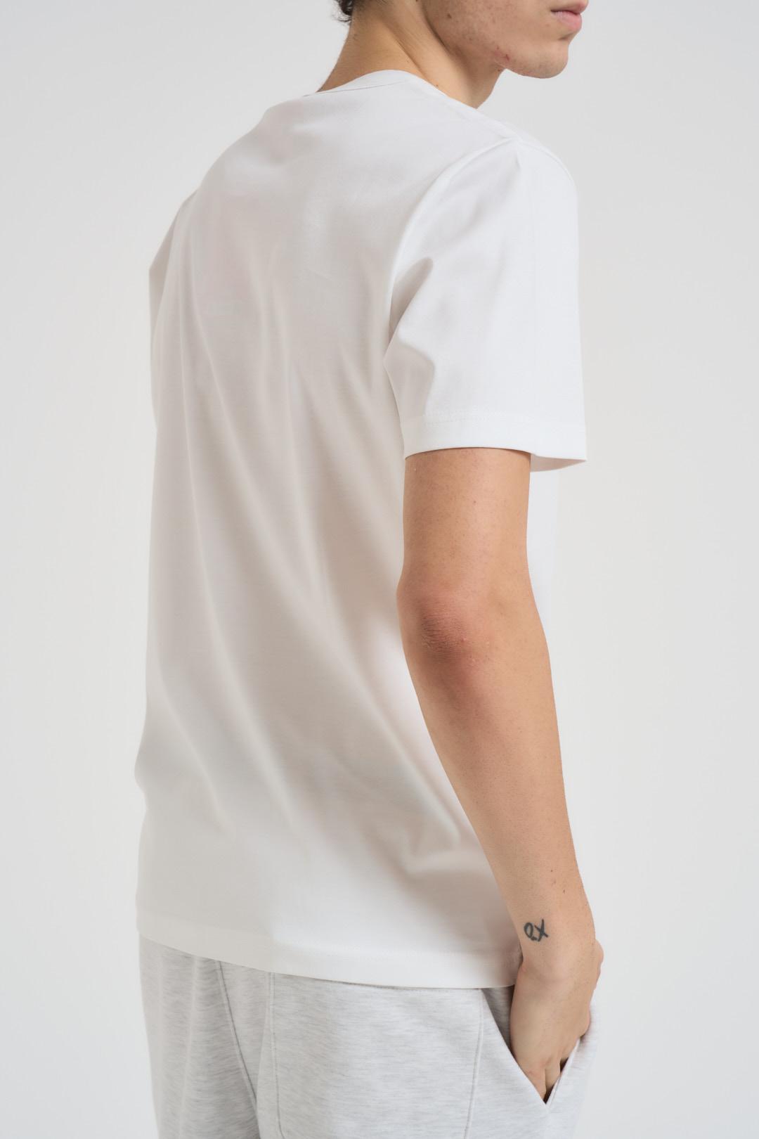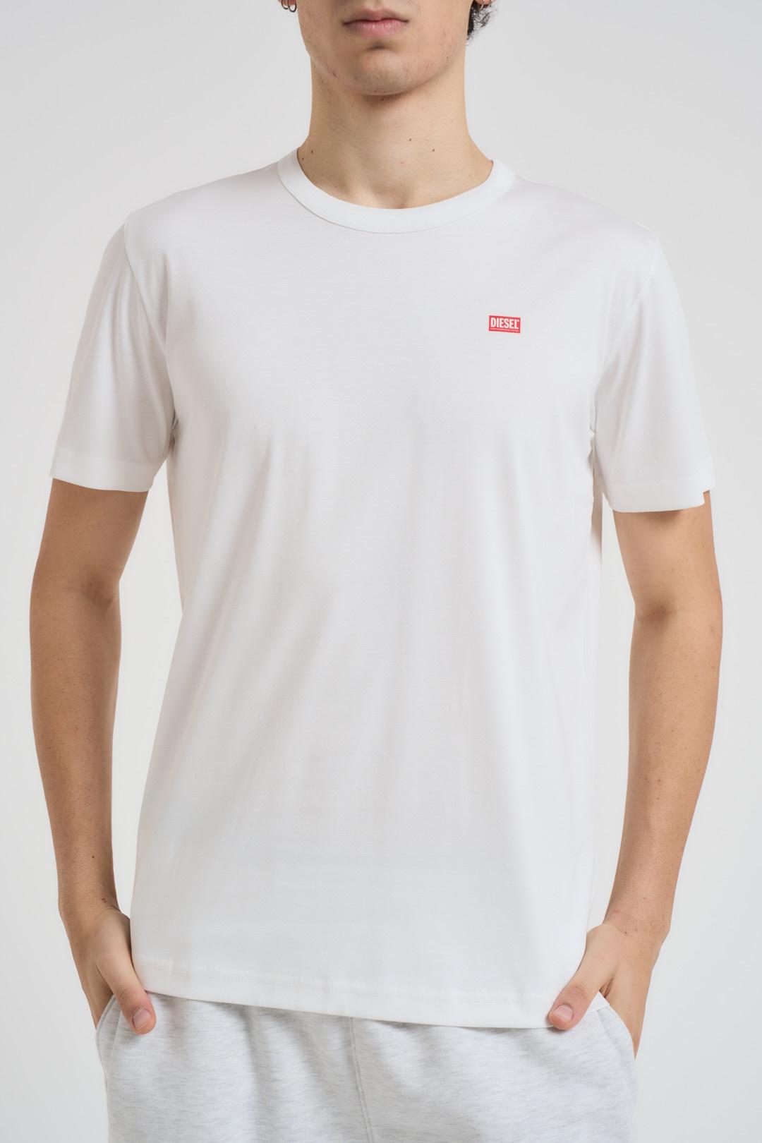 DIESEL T-shirt uomo girocollo bianca con logo. Modello a manica corta con logo stampato in rosso sul petto a sinistra. Composizione: 100% cotone. Il modello è alto 190cm e indossa la taglia M.