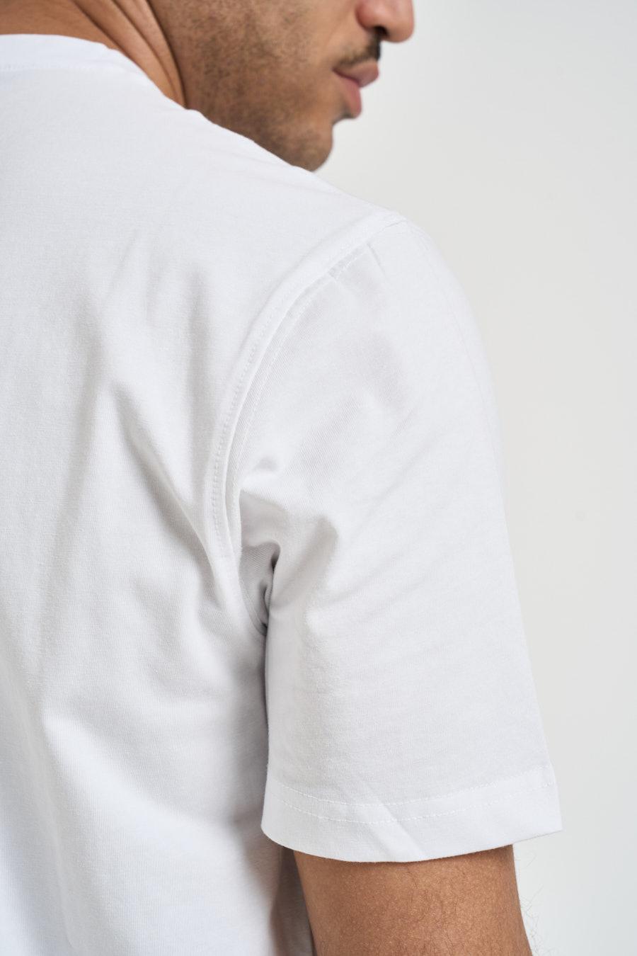 MARKUP T-shirt uomo girocollo bianca. Modello regular fit a manica corta. Composizione: 95% cotone 5%elastane. Il modello è alta 183cm e indossa la taglia 50.